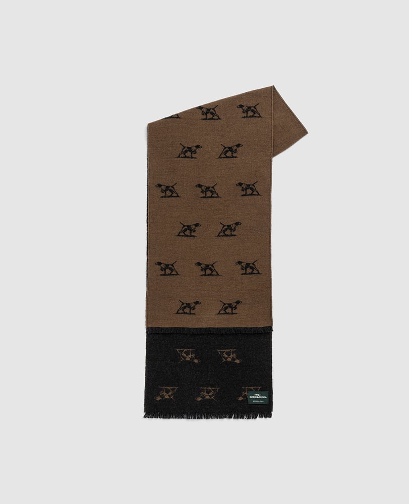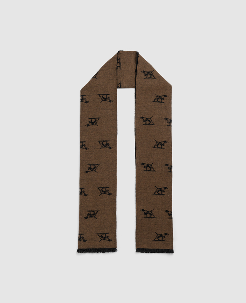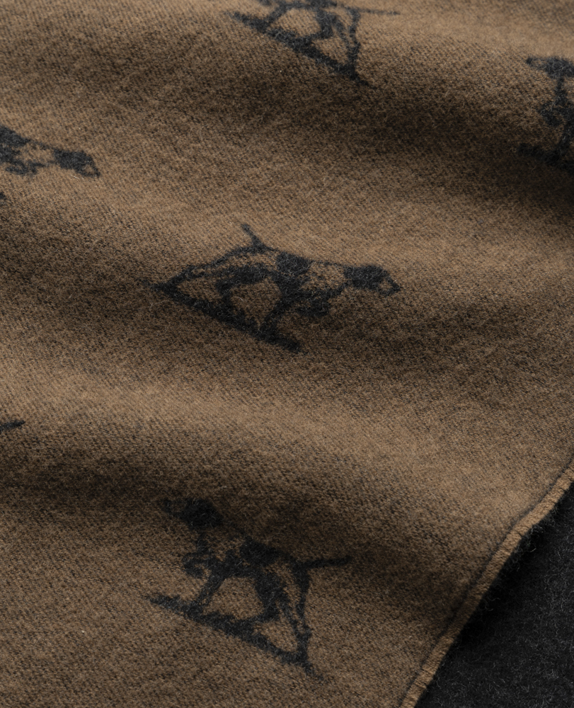 Made in Italy from Australian virgin wool, the Gunner Scarf has our English Pointer icon woven though the scarf in subtle tonal shades embracing Gunner.