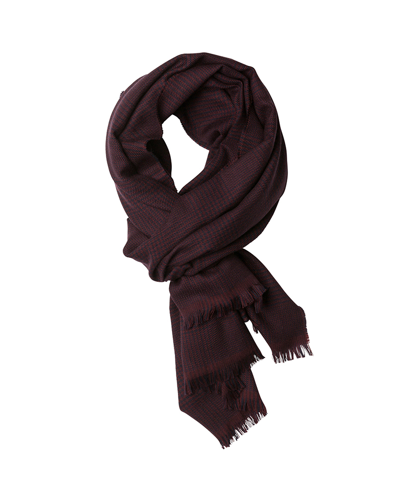 The Hassett Drive scarf is a sophisticated option for warming up in the colder months and climes. Featuring a minimal design check and highlighted with a touch of houndstooth, the scarf is made from a luxurious virgin wool.