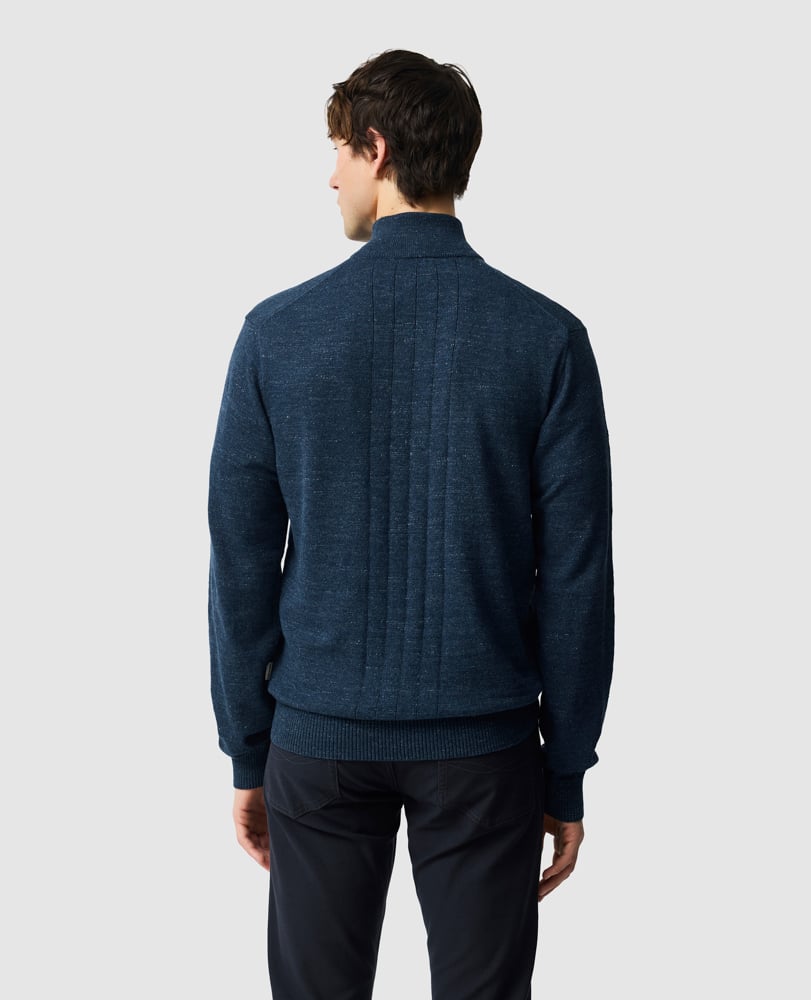 With a versatile 1/4 zip neck collar and rib back, this long-sleeve knit is made from soft and lightweight Australian cotton. The melange yarn adds depth of color and texture, making it a comfortable and stylish piece.