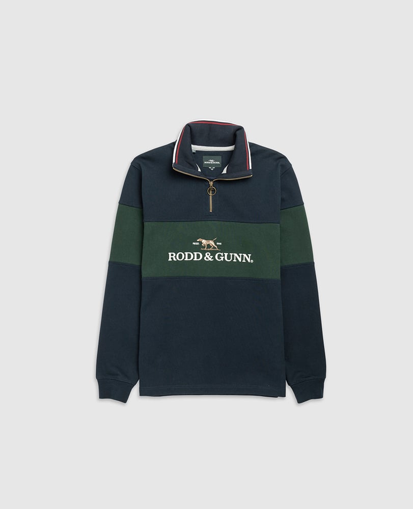 We pay homage to Rodd & Gunn's heritage with this logo embroidered panelled rugby. It's crafted from a mid-weight cotton jersey, with a zipped high neck which can be worn as a funnel neck or turned down. Pre-washed for softness and to prevent shrinkage.