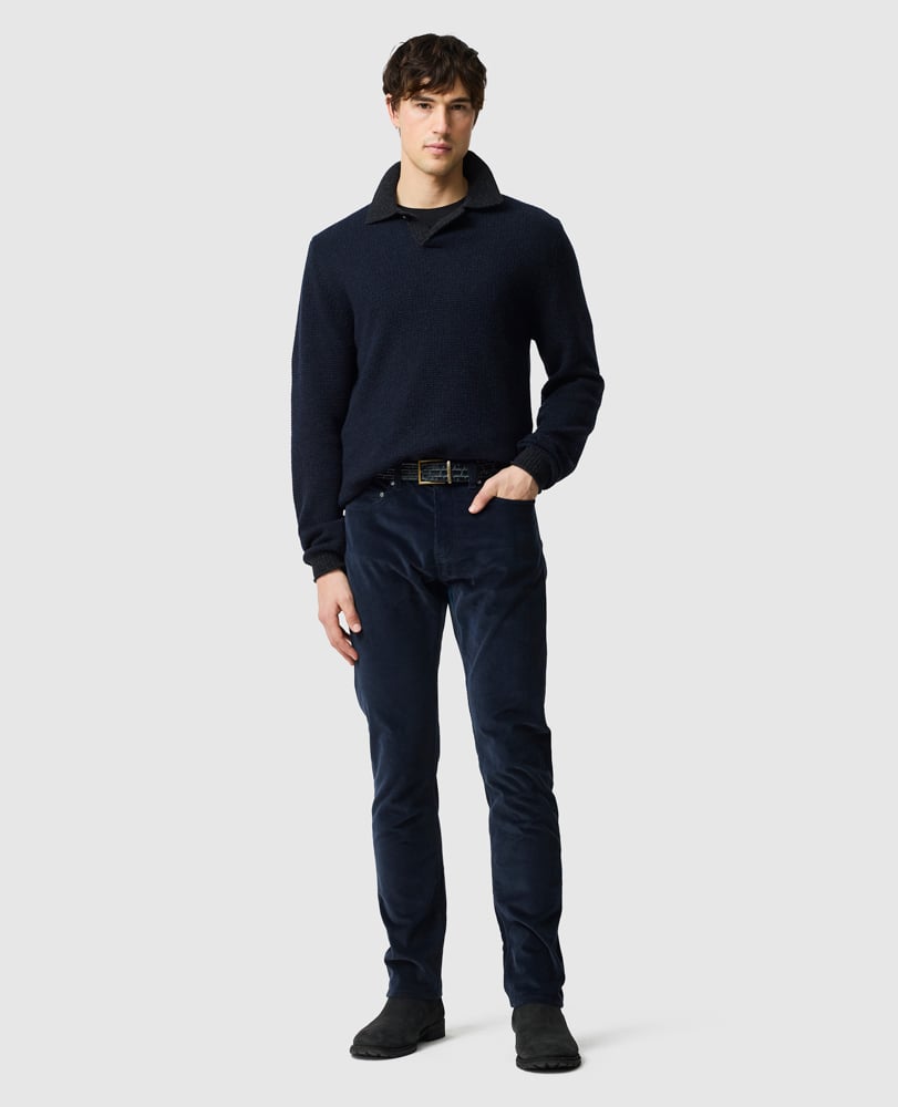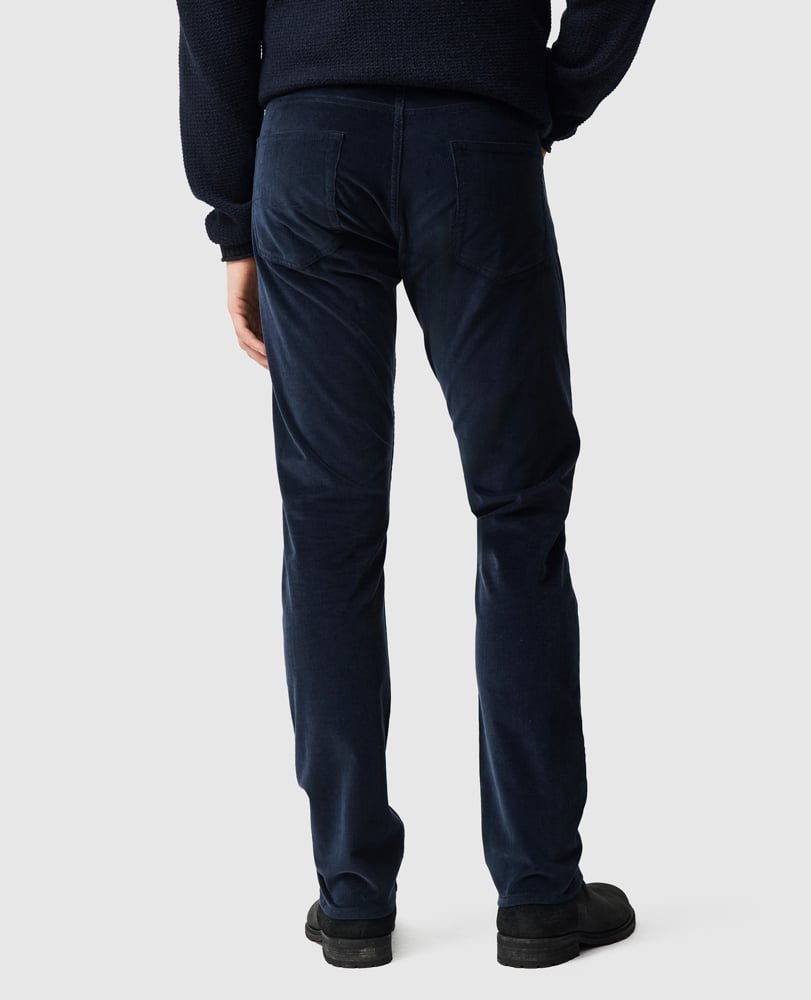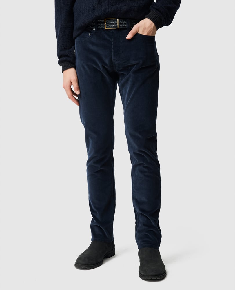 Sits just below the waist, fitted through the seat and thigh, slim through the leg. |
