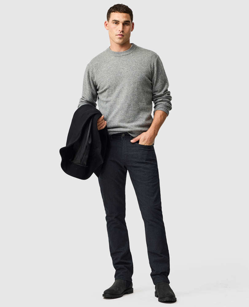A straight fit jean in a Italian cotton-fabric, with a hint of stretch. The unique motion fabric provides comfort while on the move, whilst the mid-weight structure is wearable all year. Stitched with felled seams for added durability, and furnished with antique rivets and tac button.