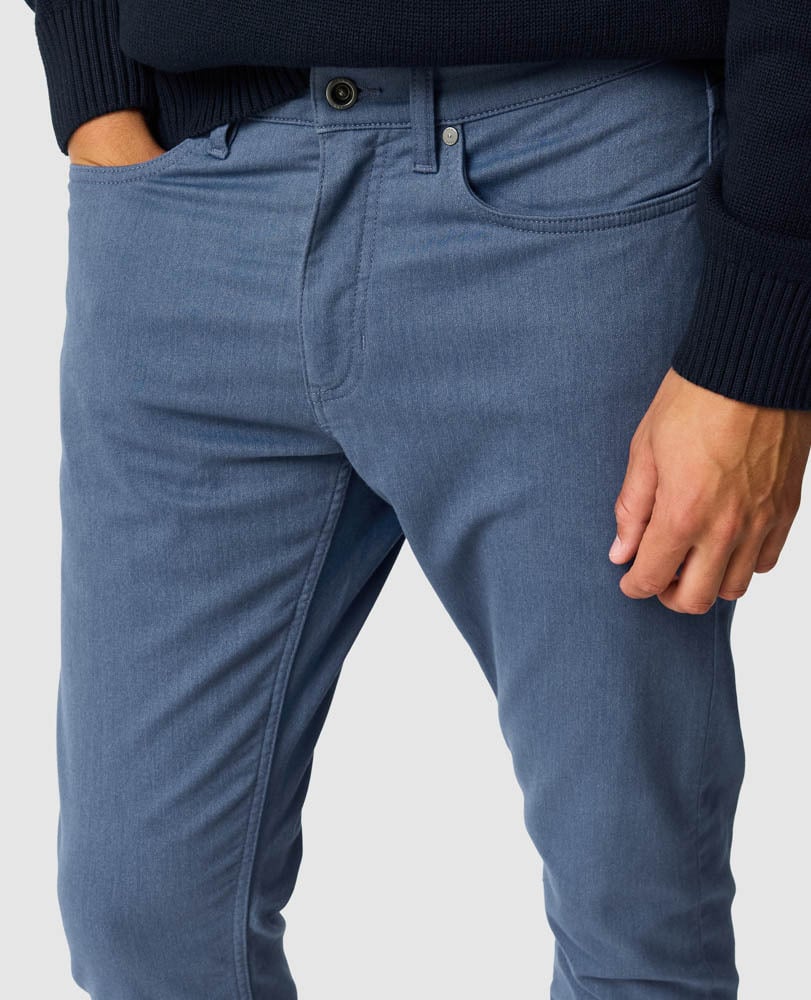 A straight fit jean in a Italian cotton-fabric, with a hint of stretch. The unique motion fabric provides comfort while on the move, whilst the mid-weight structure is wearable all year. Stitched with felled seams for added durability, and furnished with antique rivets and tac button.