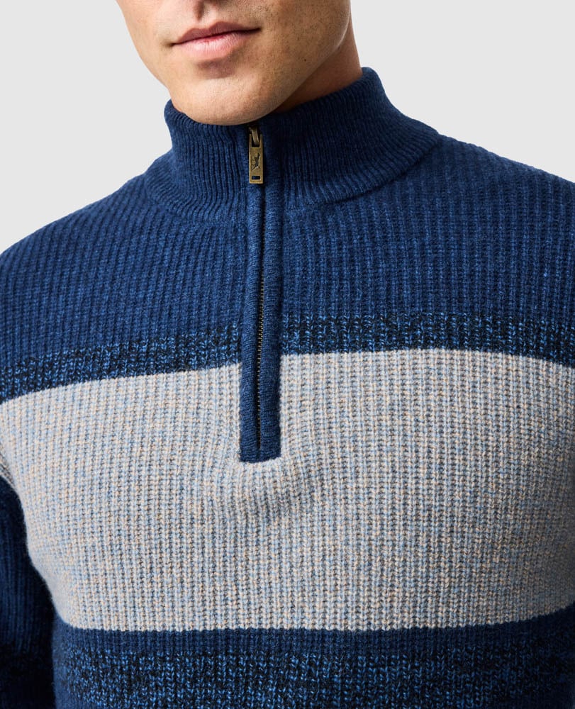 This sweater is expertly crafted from an extra fine lambs wool, textured with a melange yarn. Spun in Europe, it's crafted from 100% traceable New Zealand grown ZQRX merino, the next generation of ethical, regenerative wool that gives back more than it takes. ZQRX is the perfect fibre for year-round comfort and performance, which is backed by exceptional quality and world-class ethical standards. Each ZQRX garment is helping the planet regenerate, one fibre at a time.