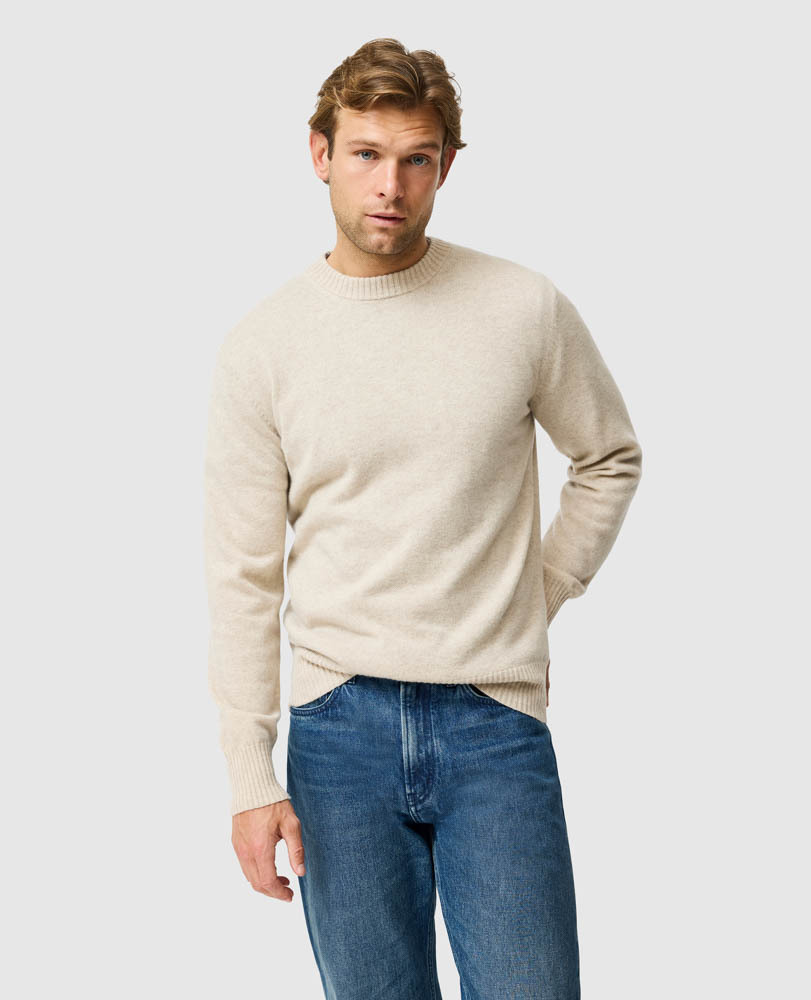 A refined layering essential, this classic crew knit is crafted from a soft Australian wool and cashmere blend for warmth, comfort, and a luxurious handfeel. Available in a curated range of colours, it pairs effortlessly with shirting, overshirts, or jackets, making it a versatile staple for both casual and elevated winter styling. Timeless in design and supple in texture, it's the perfect foundation piece for the season.
