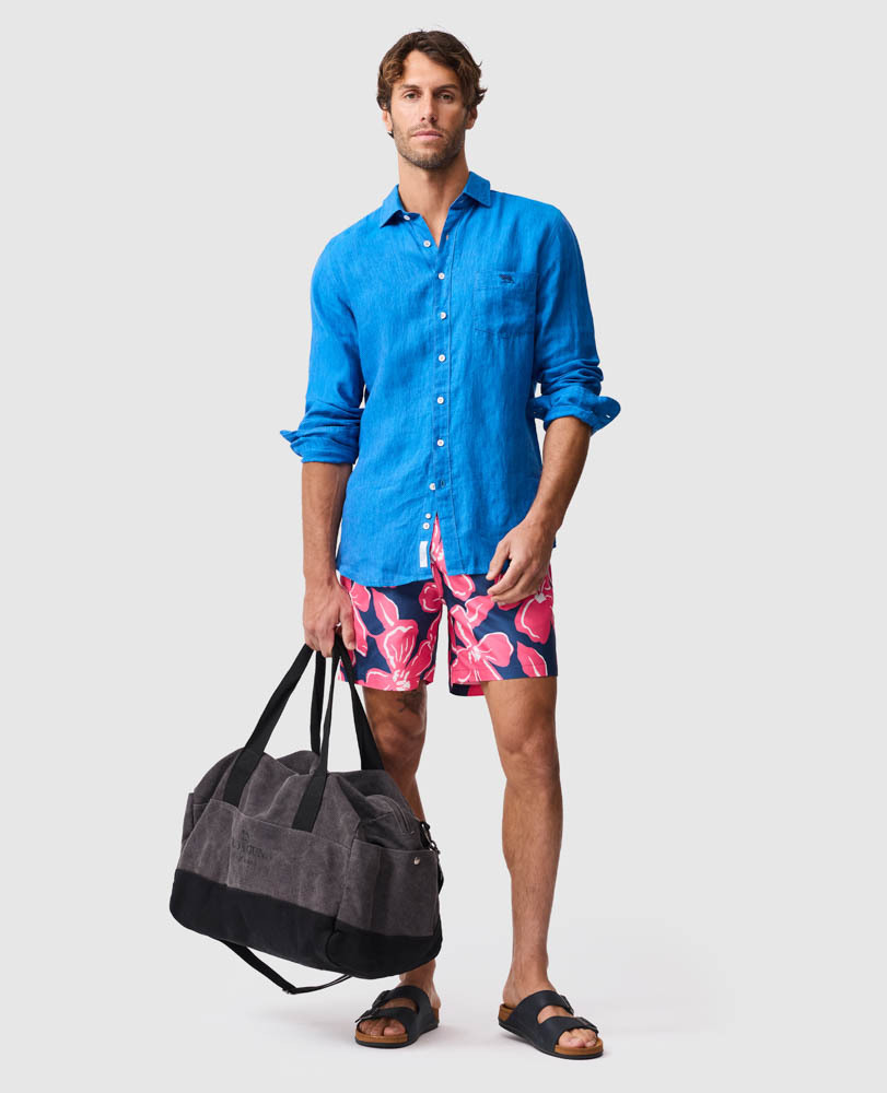 Our fitted, sports fit linen shirt woven from yarns that feature a unique delave wash, which lends the fabric a slightly faded look and soft feel. Milled in Italy, from premium linen harvested in France and Belgium. Pre-washed for easy going feel, the fabric will continue to soften over time and with each and every wash.