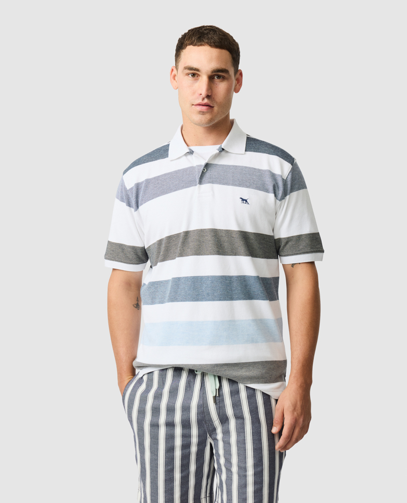 Stand out in this nautical bold stripe polo crafted from a soft, breathable pique which features a birdseye knit which gives a layer of depth and sophistication to the fabric.