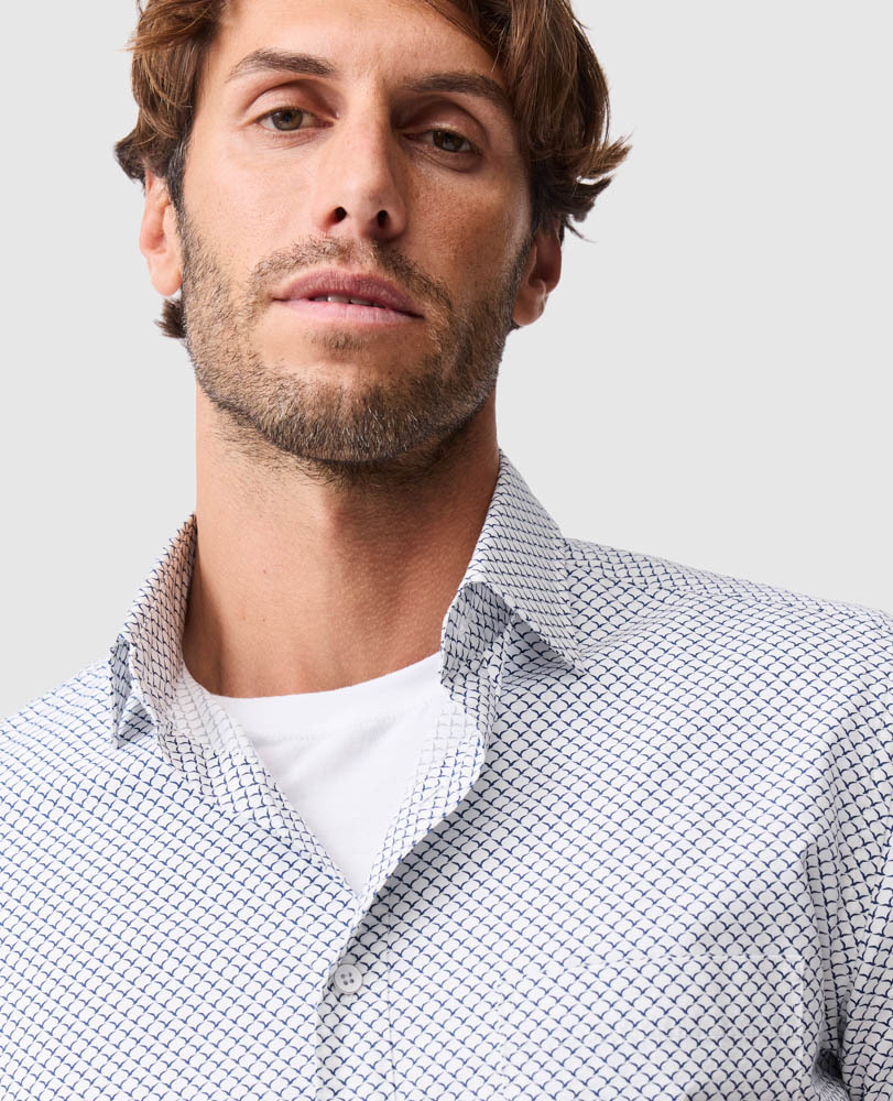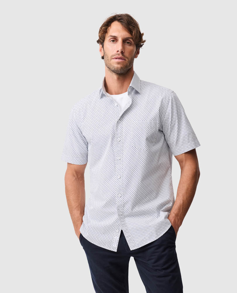 The Fourviews shirt features a subtle, linear, bird print on a fresh white base making it a versatile, easy way to elevate your summer outfit. Crafted from 100% Cotton and designed in our comfortable Original Fit, this shirt can be worn buttoned up for a refined look or open over a t-shirt for a more casual vibe.