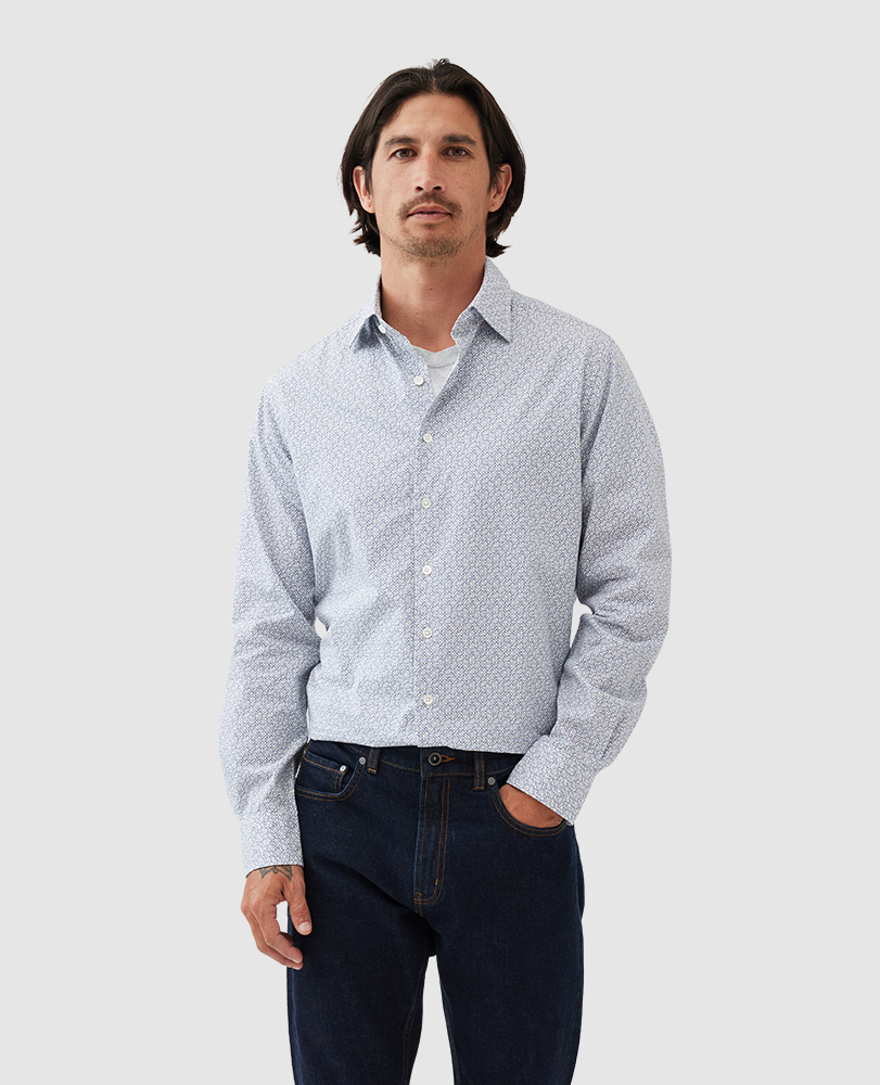 This versatile micro print shirt is the perfect addition to your business and semi-formal wardrobe. Woven in Europe from premium USA grown cotton, it's soft, breathable, and comfortable to wear all day long. The spread collar with removable collar stays and French placket with mother-of-pearl buttons add a touch of sophistication, while the knife pleats at the back yoke and adjustable barrel cuffs ensure a perfect fit.