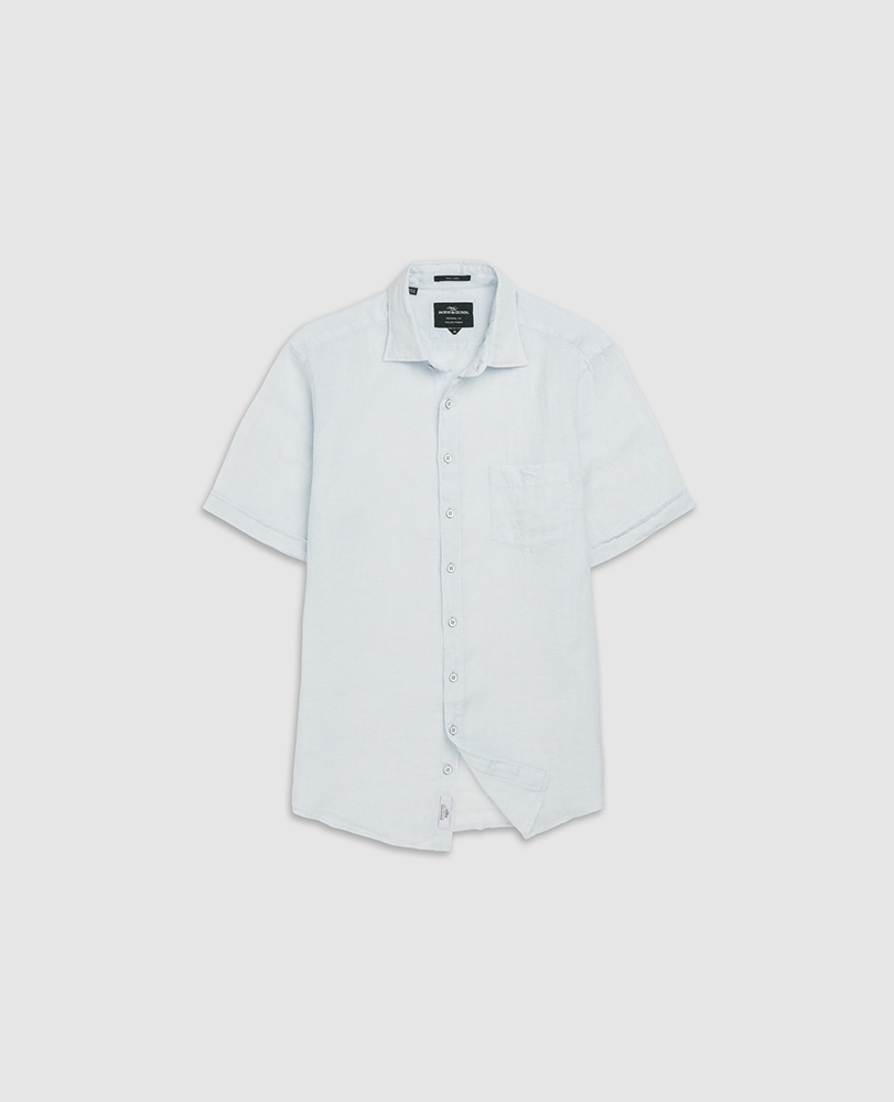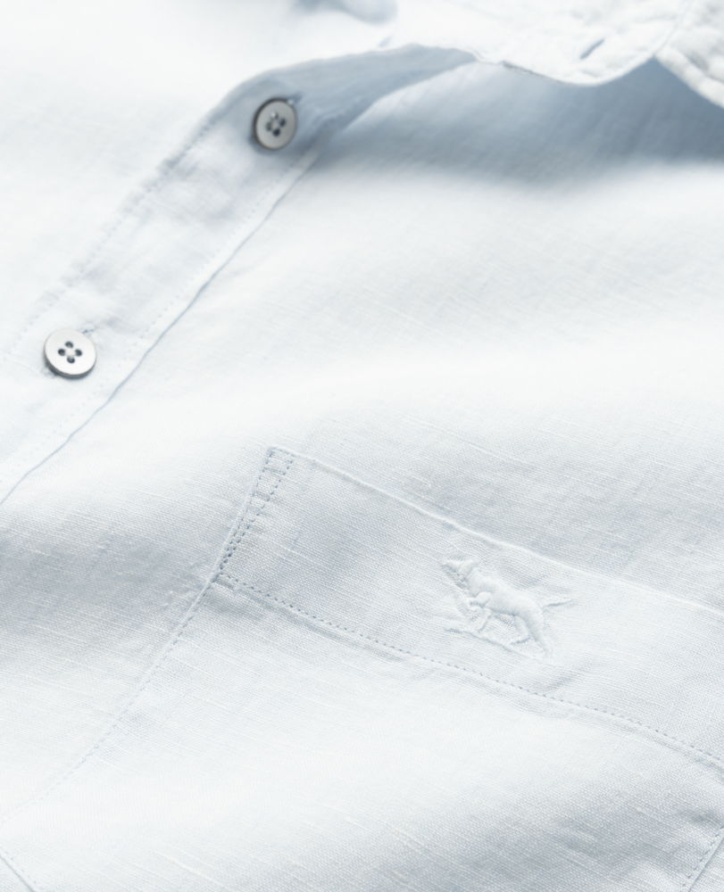 This short sleeve shirt is woven from yarns that feature a unique delave wash, which lends the fabric a slightly faded look and soft feel. Milled in Italy, from pre - mium linen harvested in France and Belgium and certified by European Flax. Prewashed for easy going feel, the fabric will continue to soften over time and with each and every wash.