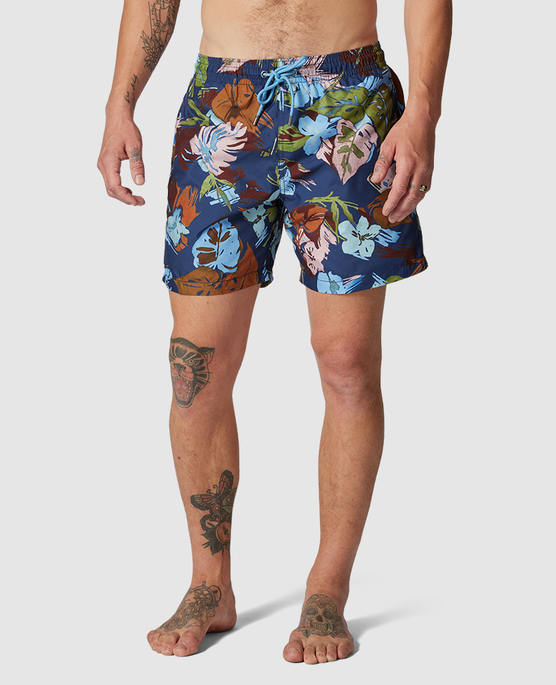 These swim shorts are cut from a lightweight and durable polyester fabric, milled in Europe. The mid-length is universally flattering, whilst the eye-catching print is effortlessly cool. Equipped with an inside net, they'll look as good around town as they would by the poolside.