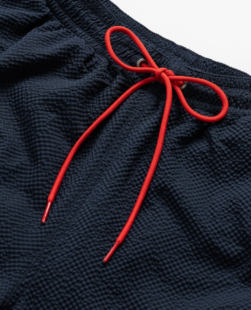 Dive into style with these refined seersucker swim shorts, crafted from a durable and quick-drying recycled polyester. Perfect for the beach or pool, these shorts combine a classic seersucker texture with modern functionality for ultimate comfort and ease.
