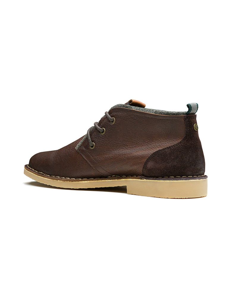 A wardrobe staple for casual wear, the Mercer boot is a three eyelet desert boot style. The outsole is rubber, ensuring longevity, whilst the burnished leather uppers are replete with a felt collar. The boot is finished with leather lining.