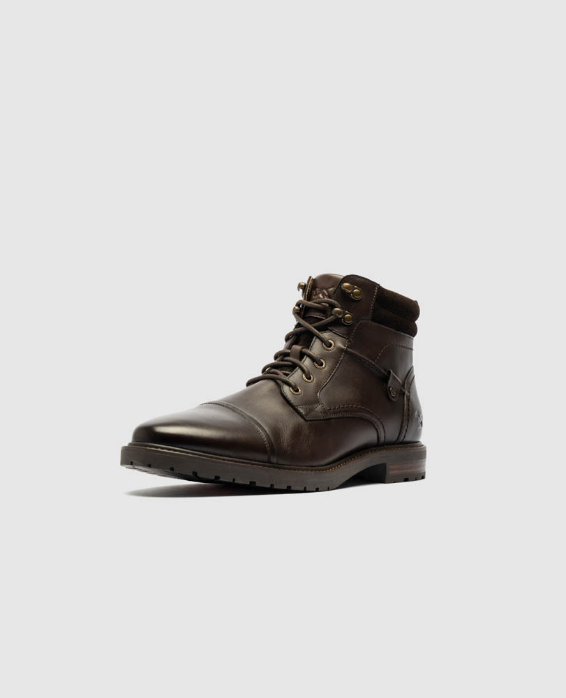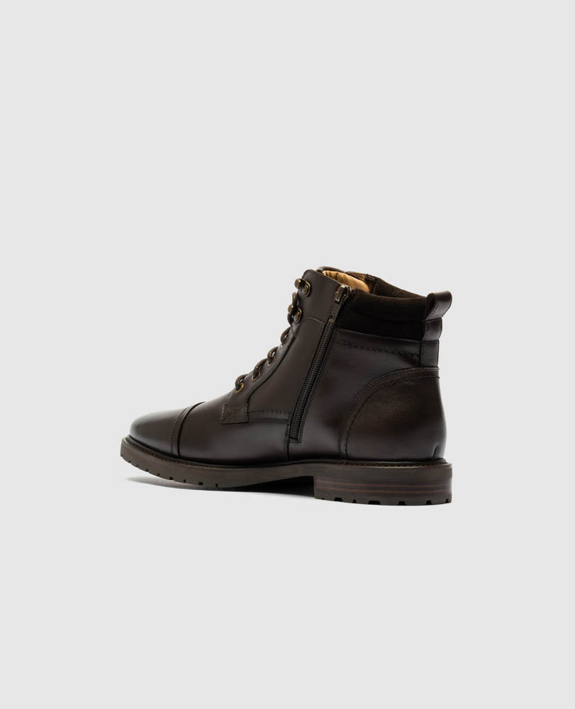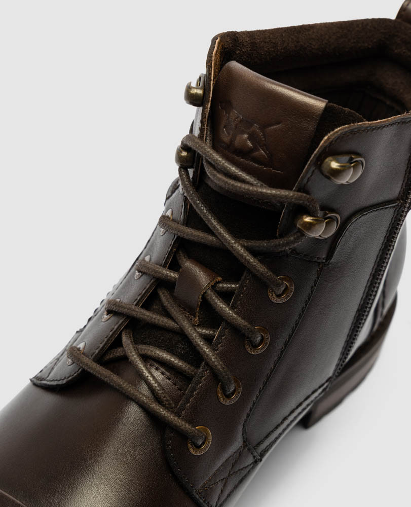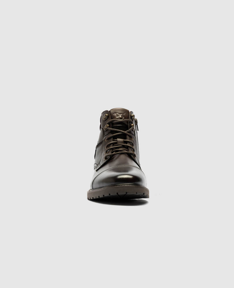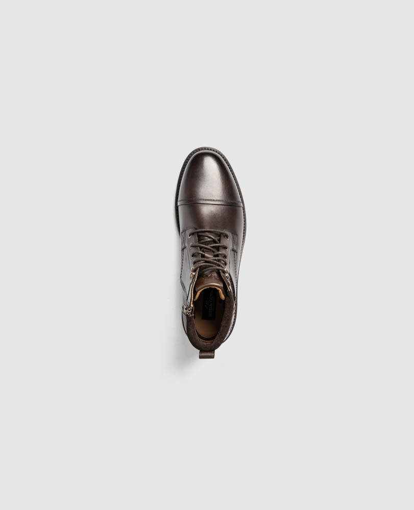The Brookdale Military boot serves as an all-purpose hybrid of rugged style and refined comfort. Crafted in premium USA leathers, with matching suede collar & tongue and antiqued finished hardware, the Brookdale transitions seamlessly from dress-casual to everyday wear. The upper features and inside zip for convenience, with leather and fabric lining plus a leather covered moulded polyurethane footbed for superior comfort. The flexible, durable moulded cleated rubber sole features a stylish leather veneer heel insert. The Brookdale Military Boot will be your go to boot, paired perfectly with denim or chino’s.