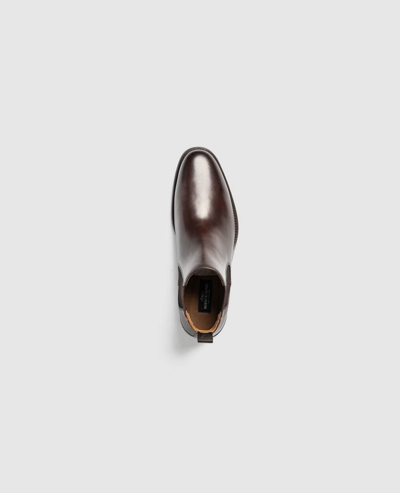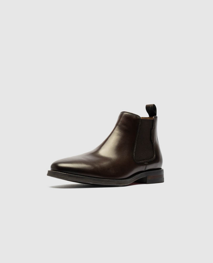 The Russlands Chelsea Boot is a refined classic, crafted around a sleek, sophisticated last, wrapped in supple Argentinian cowhide and lined with fabric and leather for enhanced breathability, with a removable, moulded polyurethane leather covered footbed for added comfort. A durable, flexible and comfortable rubber sole is cemented for long-lasting wear, while a leather veneer insert in the heel adds an extra touch of elevated craftsmanship.