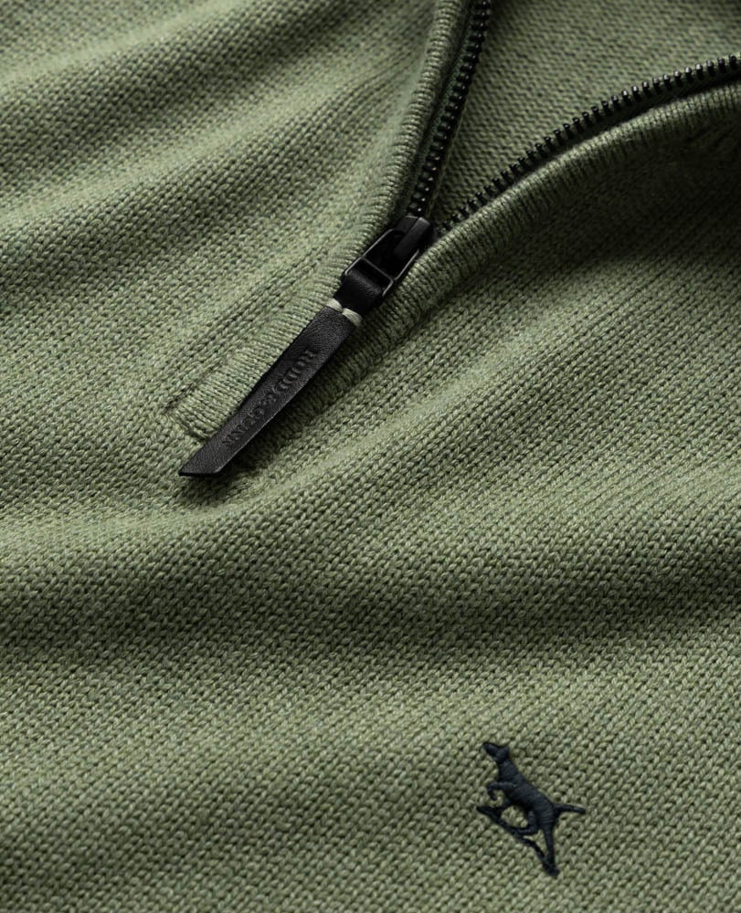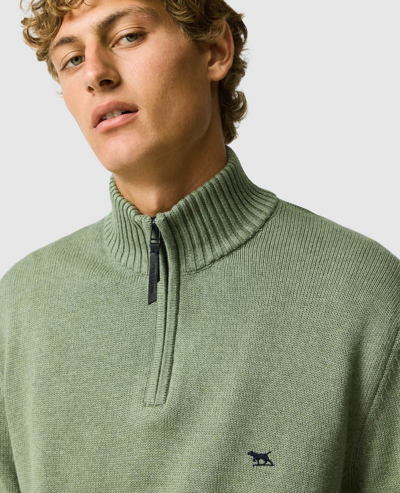 A quarter zip sweater, in a melange cotton. Combining the comfort and ease of cotton with a lightweight gauge ideal for layering over the colder months. Straightforward styling furthers versatility.