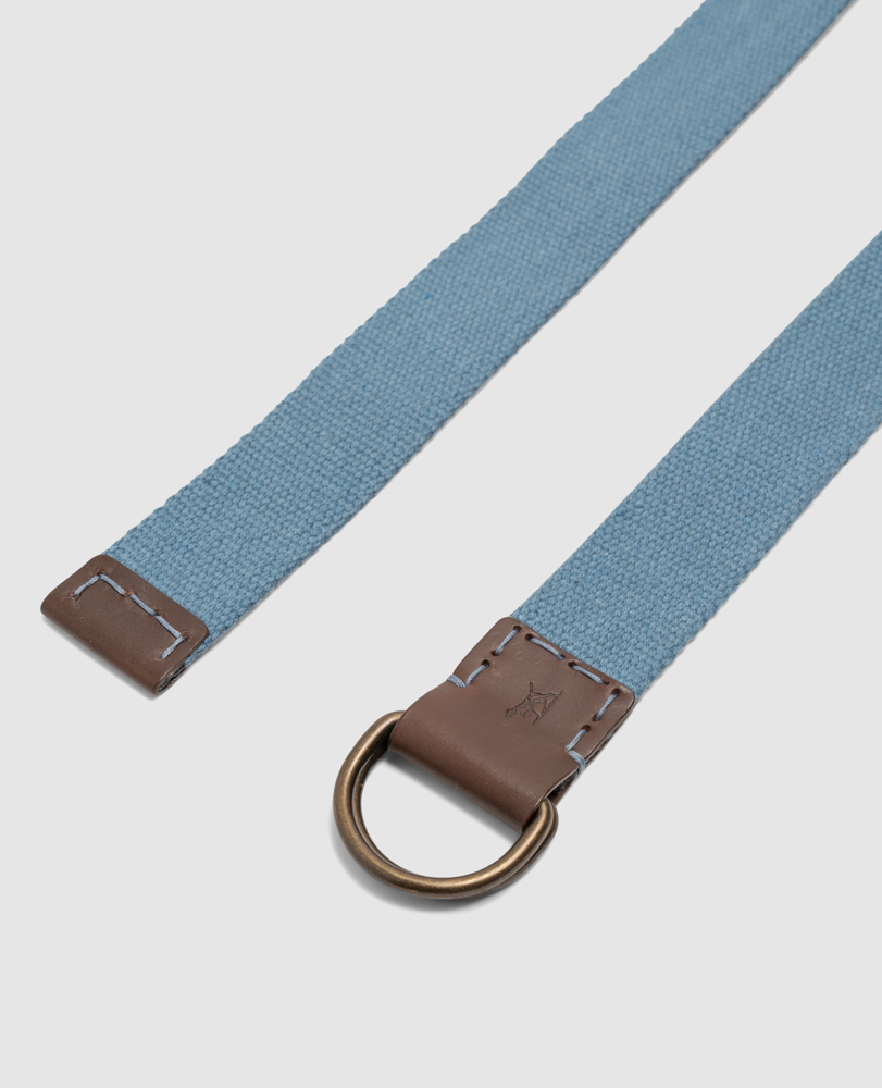 Crafted in Italy, the Double Bay Belt is made from washed European cotton woven in Italy, features hand stitched leather trims and a unique double D-Ring belt loop/buckle in an antique brass finish that is easily adjustable for the perfect fit. This summer essential perfectly complements your shorts, chinos and denim.