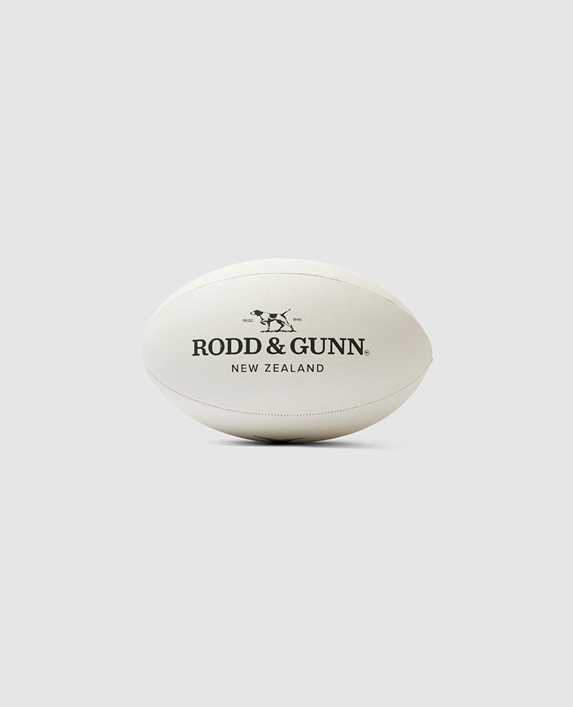 Practise your rugby skills at home with our genuine Gilbert X Rodd & Gunn White ball. This retro inspired designed ball is a full size 5 rugby ball, made by Gilbert using their grippy rubber coated canvas, and features our Gilbert X Rodd & Gunn collaborative logo with the green and black ellipse's design.