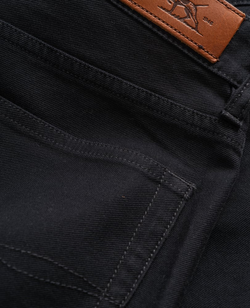 A straight fit jean in a Italian cotton-fabric, with a hint of stretch. The unique motion fabric provides comfort while on the move, whilst the mid-weight structure is wearable all year. Stitched with felled seams for added durability, and furnished with antique rivets and tac button.