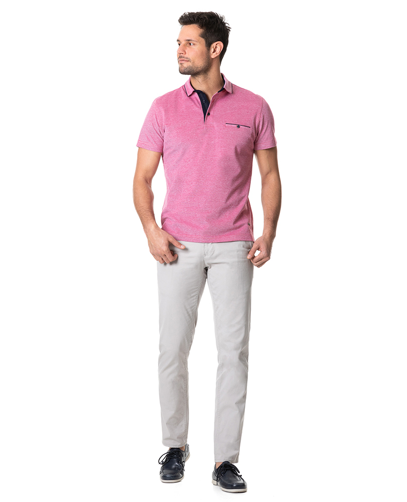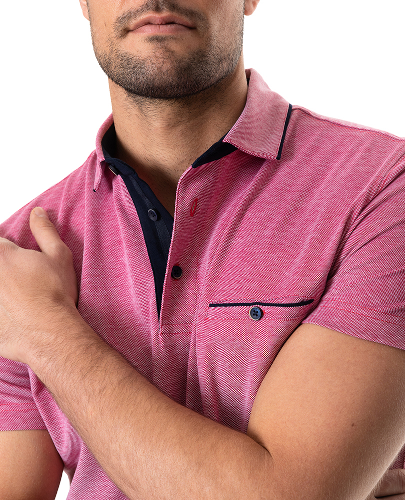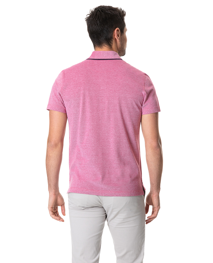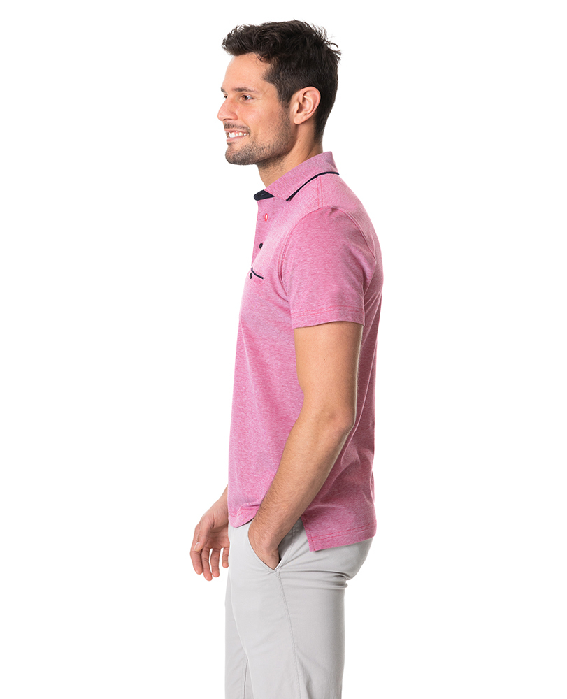 Crafted from a soft, cool-touch mercerised cotton- this polo features a breathable pique and textured two-tone knit. The sophisticated fabric is complimented with a shirt style collar, with contrast piped edges, finished with a heavy wash for a premium hand feel.