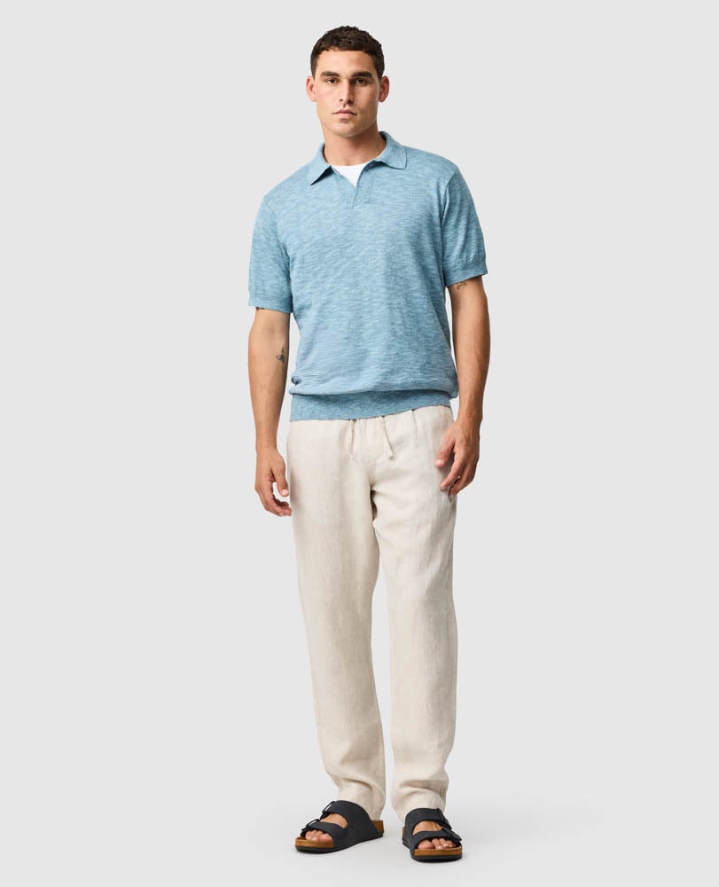 Crafted from a Linen Cotton blend soft jersey slub knit, the Poison Bay polo is the perfect relaxed, yet sophisticated warm-weather staple. The natural slub texture adds depth, while the fully fashioned details keep the silhouette refined. Easy to throw on after a swim or style with chinos for a laid-back dinner, it's an effortless summer go-to.