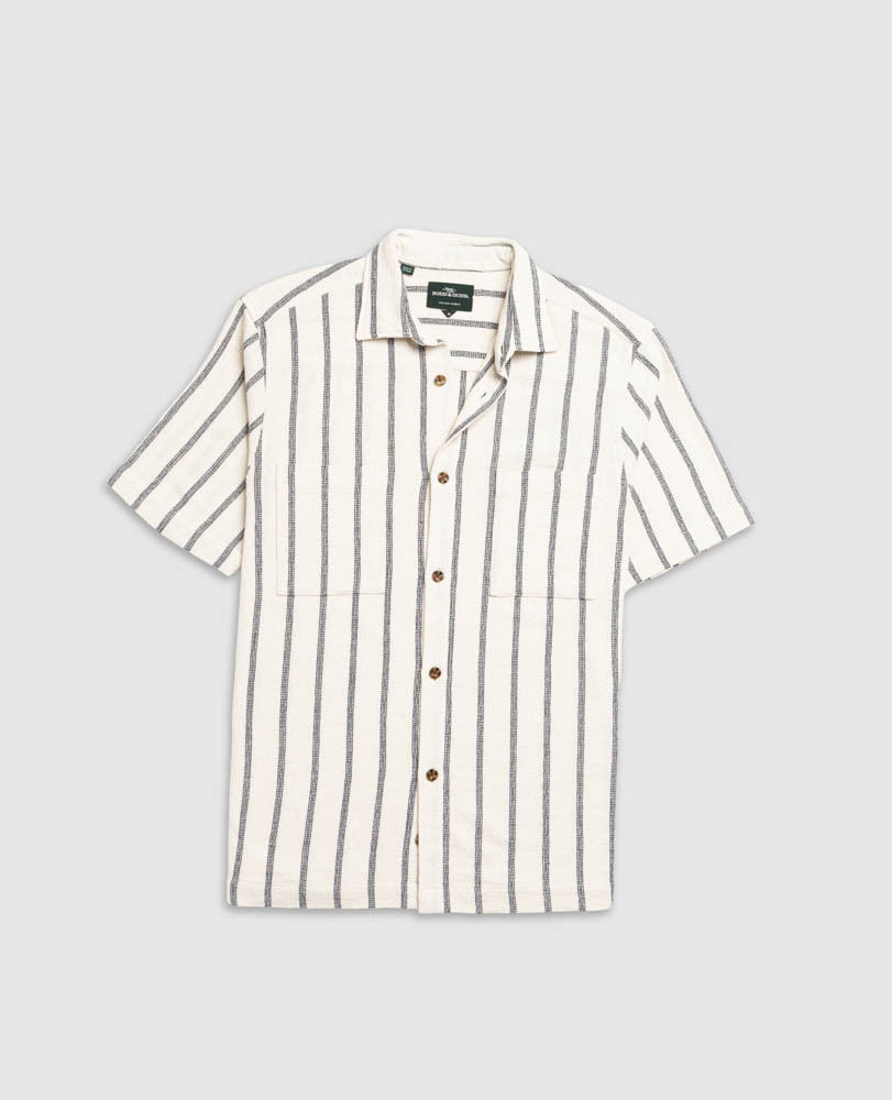 Keep cool this summer in the Melford shirt, woven in a special 'open-net' fabric adorned with a vertical stripe. This shirt offers a unique blend of breathability and style, ensuring you stay comfortable under the sun.