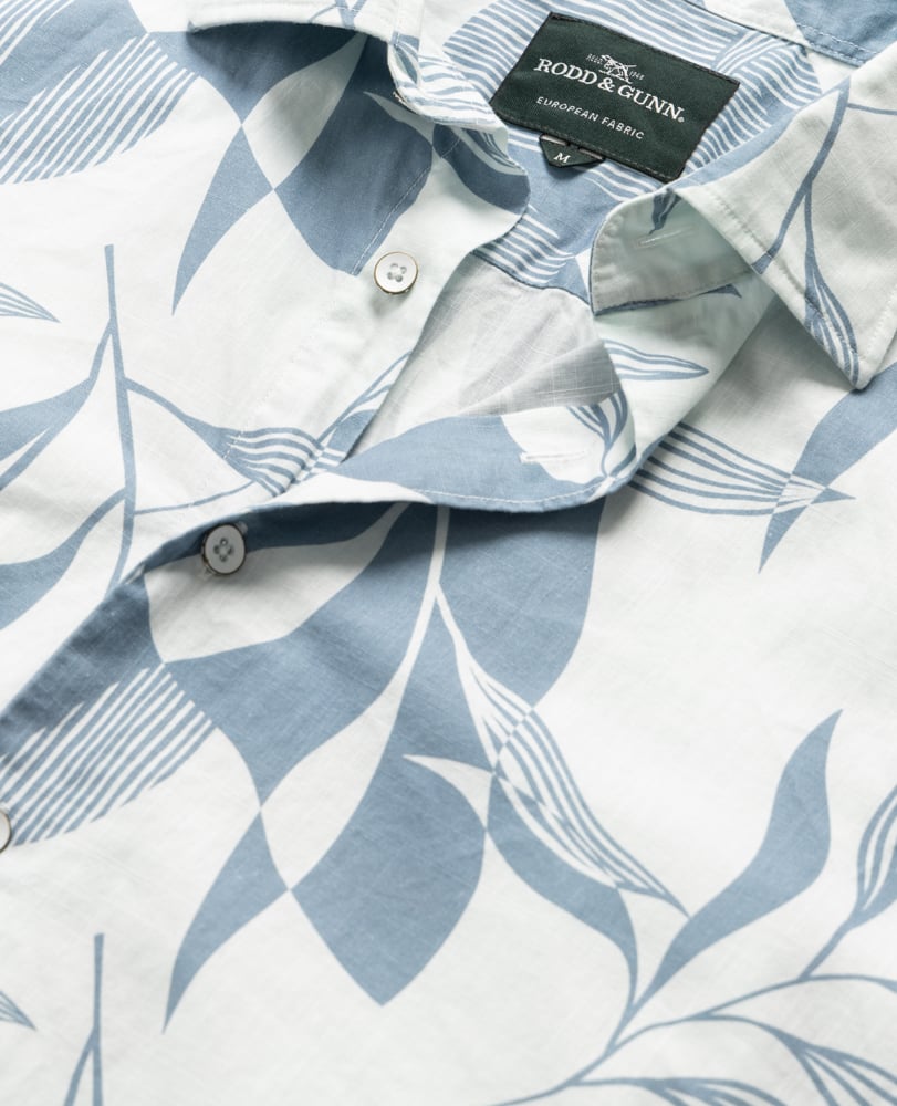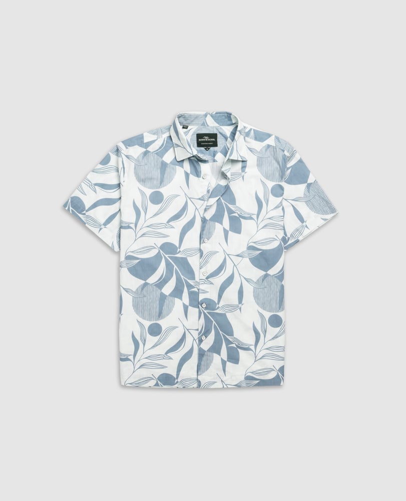 Make a statement in the Carrington shirt featuring a bold, linear, leaf print in stonewash blue on a white base. Styled in our relaxed Weekend Fit and crafted from premium cotton fabric, this breathable shirt will be your new summer favourite.
