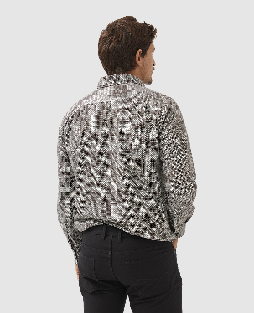 Add a touch of vintage flair to your wardrobe with this striking geo-print shirt. Expertly crafted by the renowned Italian mill Albini, known for their century-long history of creating unique fabrics. Made from the finest quality 70's cotton yarns for ultimate smoothness and easy care, this shirt will be a statement piece in your wardrobe for years to come.