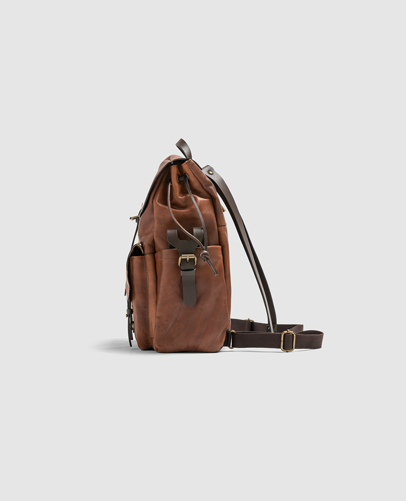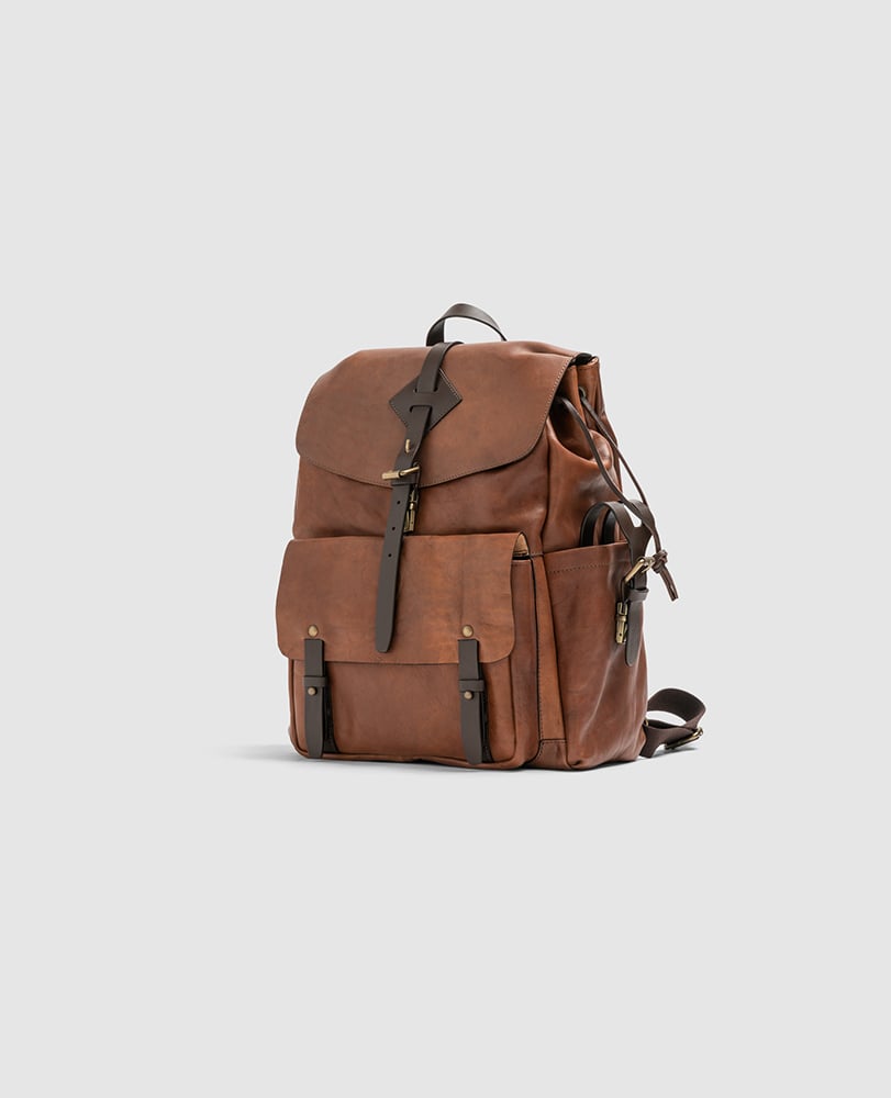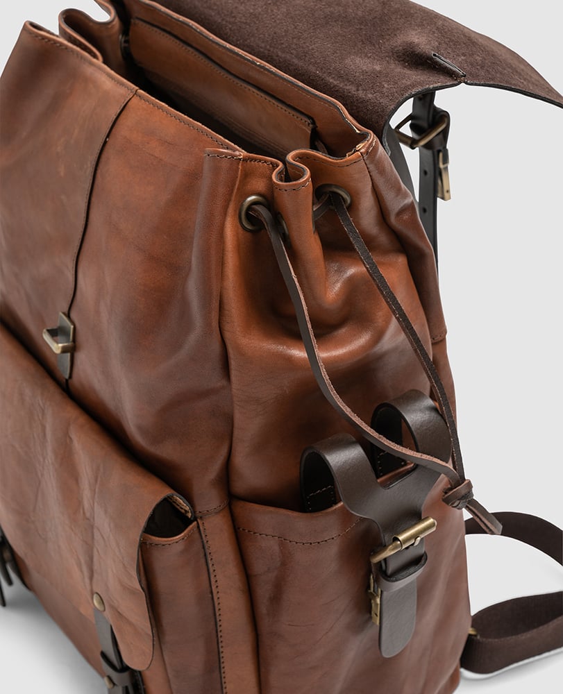 The Tuakau back pack is a stylish and versatile bag crafted in Italy from soft leather, It is large enough to carry a large laptop in the dedicated compartment, with plenty of room to carry more. There are external pockets for a water bottle and device.