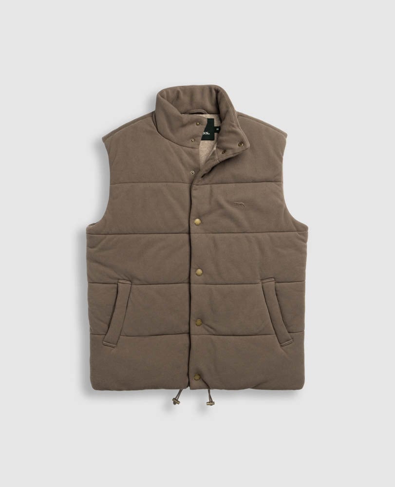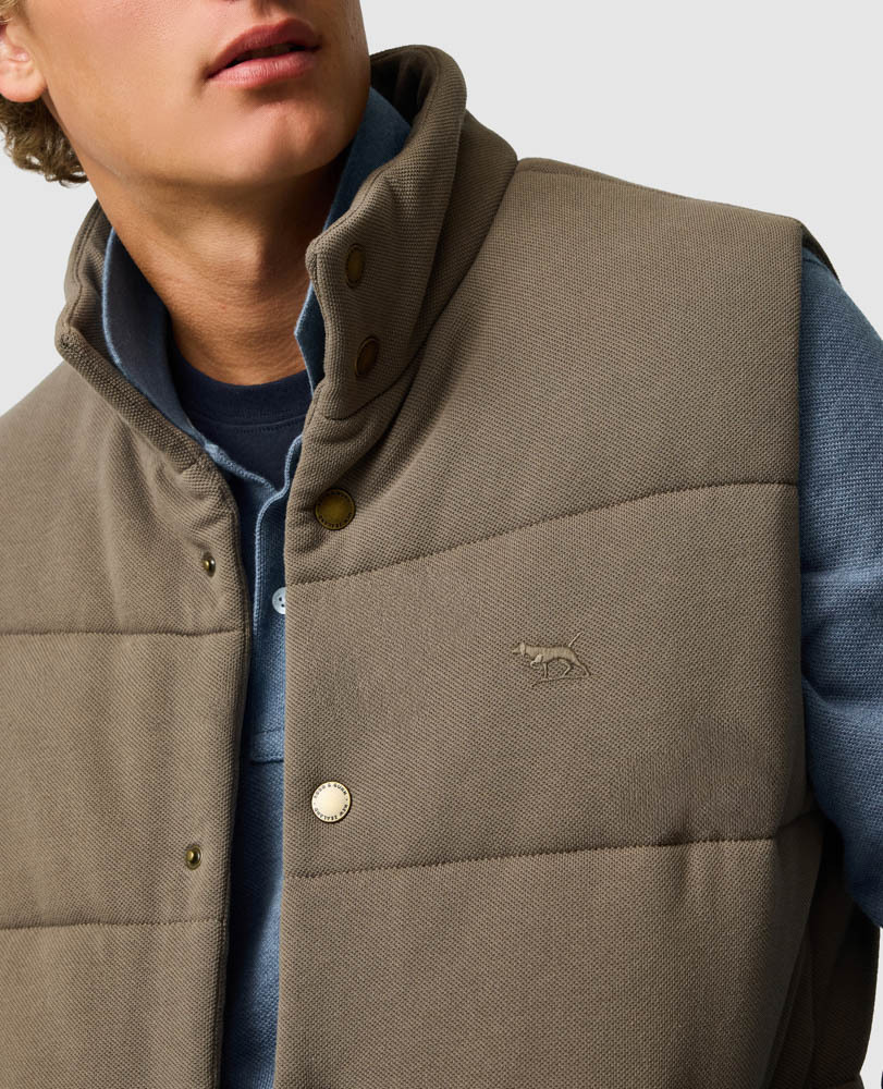 This vest is made from a soft and sporty double 32's pique fabric, crafted from 100% USA cotton. It's the perfect versatile layer for changing weather, and is batten-quilted with lightweight synthetic high loft insulation for superior warmth. The interior is lined with a soft single 32's jersey, and features an internal welt pocket for added storage. Easy to care for at home by simple machine wash.