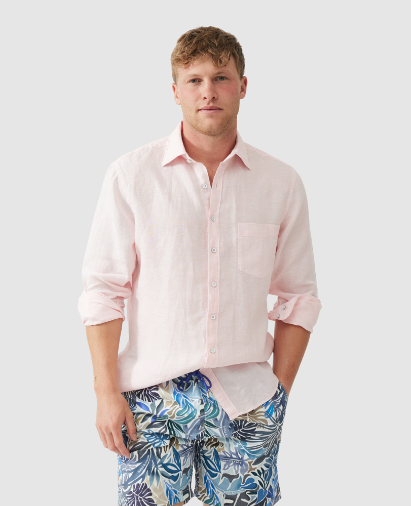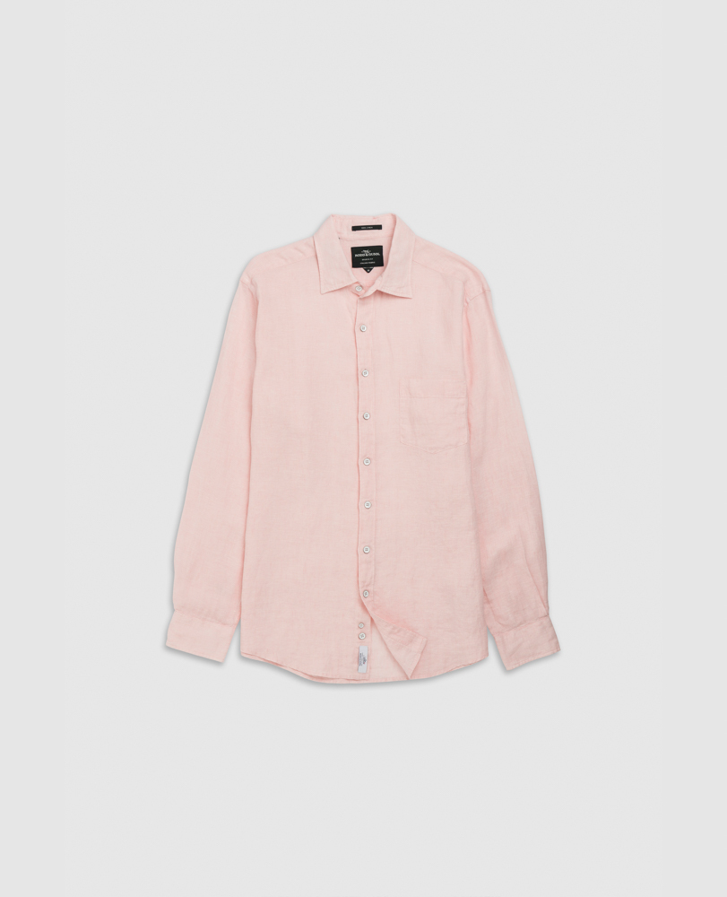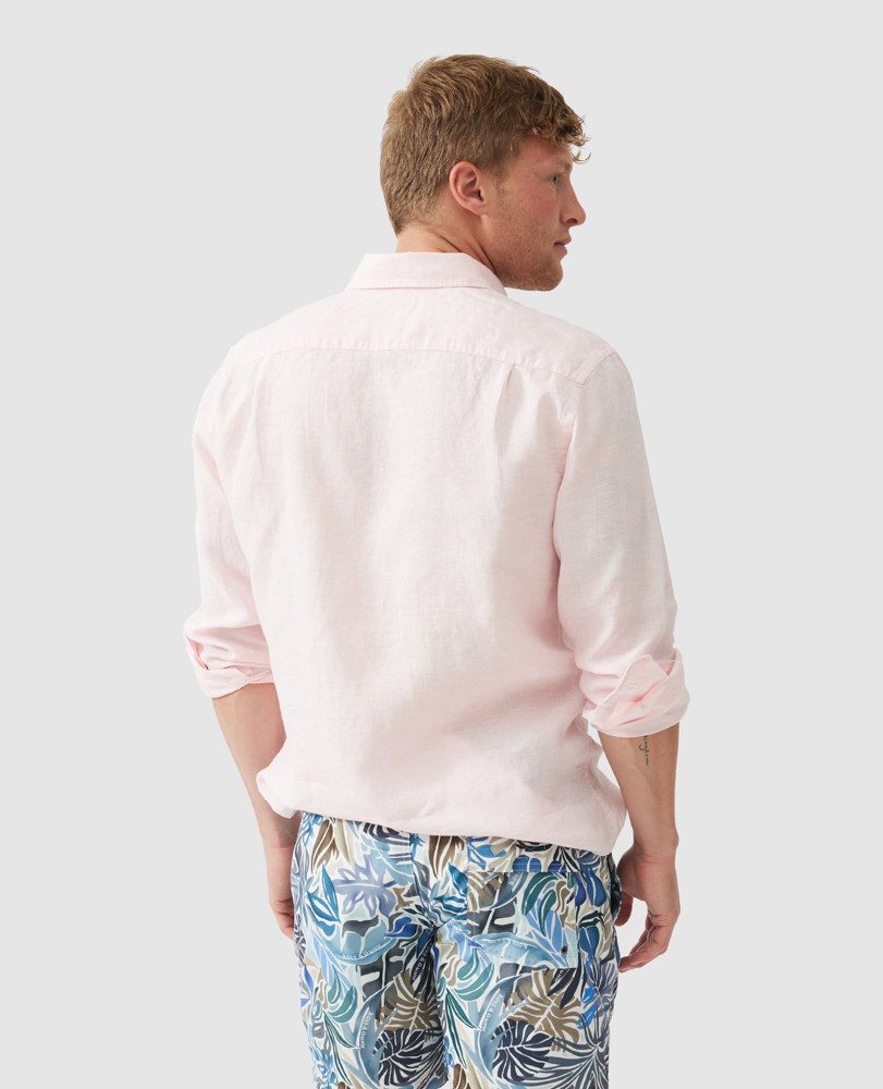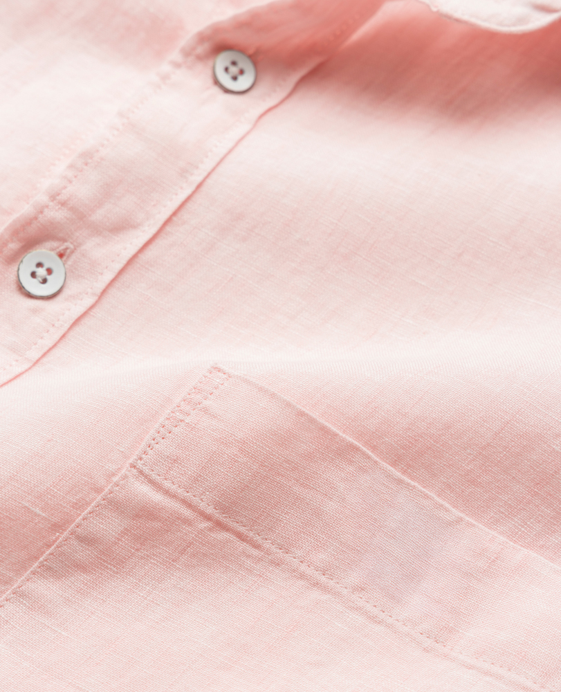 This shirt is woven from yarns that feature a unique delave wash, which lends the fabric a slightly faded look and soft feel. Milled in Italy, from premium linen harvested in France and Belgium and certified by European Flax. Pre-washed for easy going feel, the fabric will continue to soften over time and with each and every wash.
