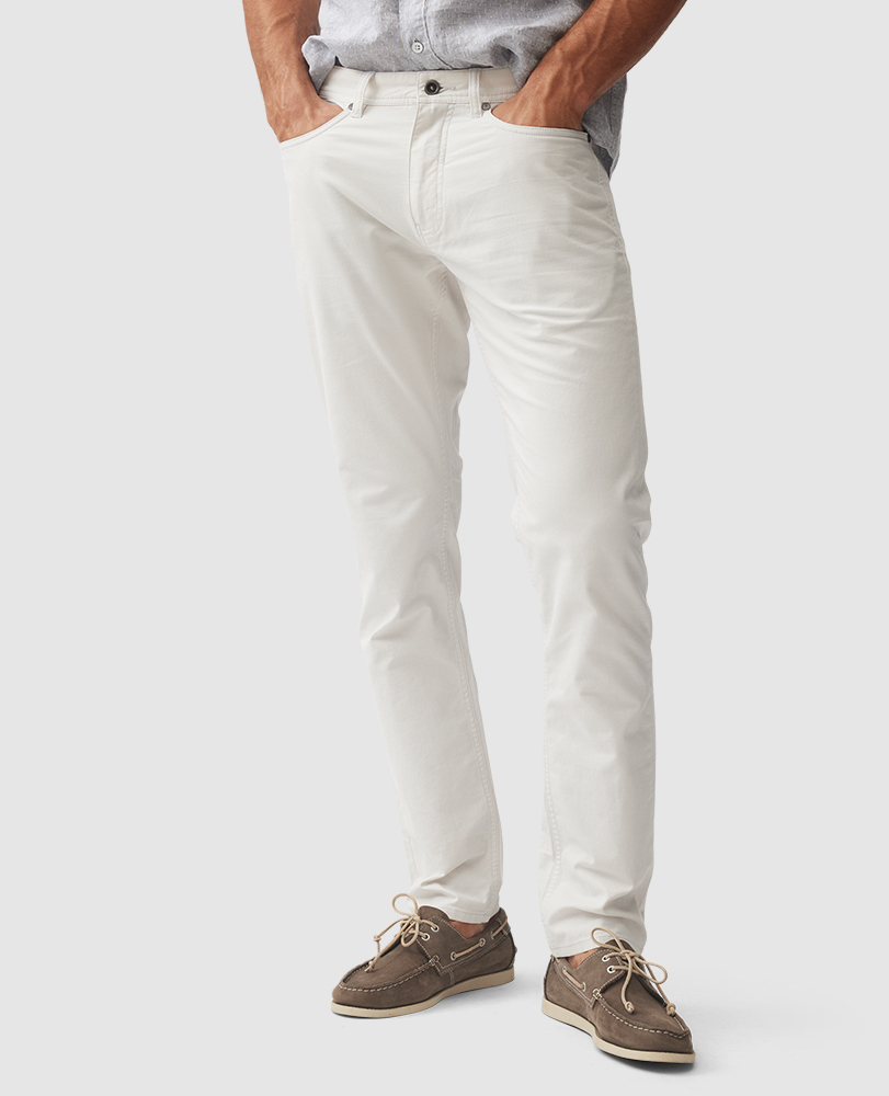 Diese stylische Stoffversion einer Denimjeans besteht aus eleganter, mikrostrukturierter Baumwolle und hat einen Stretchanteil für mehr Tragekomfort. Die vielseitige Jeans mit mittelhohem Bund und geradem Bein ist schlicht und elegant zugleich, wobei ihr durch Vorwaschen ein Used Look verliehen wurde.