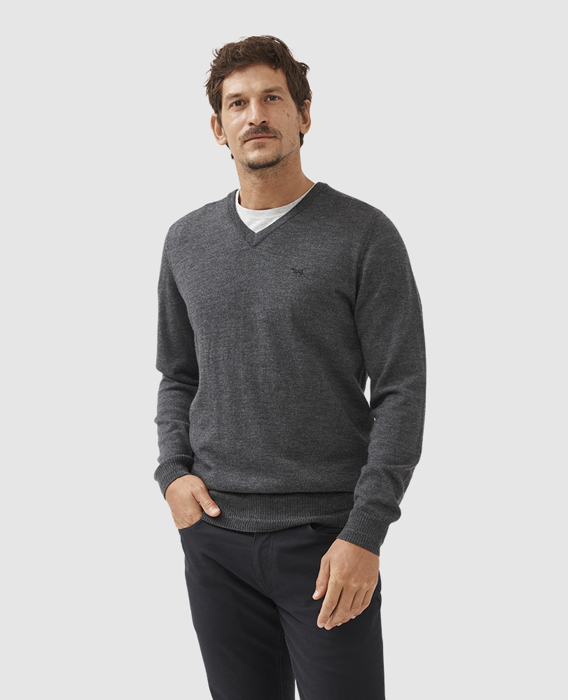 Elevate your style with this premium classic V-neck sweater, made from extrafine merino wool yarn expertly spun in Italy for guaranteed luxury and quality. Its simple yet elegant design, featuring a panel over the shoulder and herringbone stitch detail on the cuff and waist rib, makes it versatile and easy to pair with any outfit. The mid-weight gauge and ribbed neck, cuffs, and waist enhanced with stretch for a long-lasting fit makes it perfect for layering during colder months.