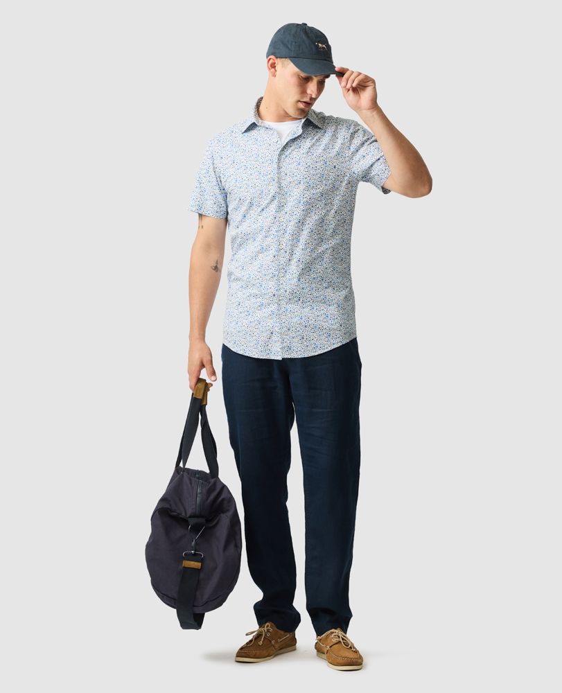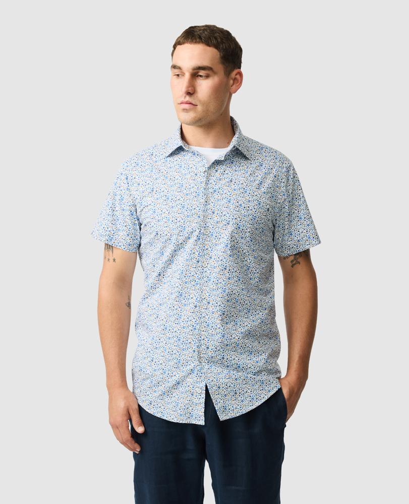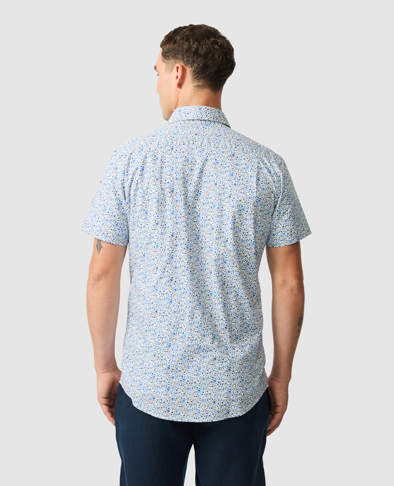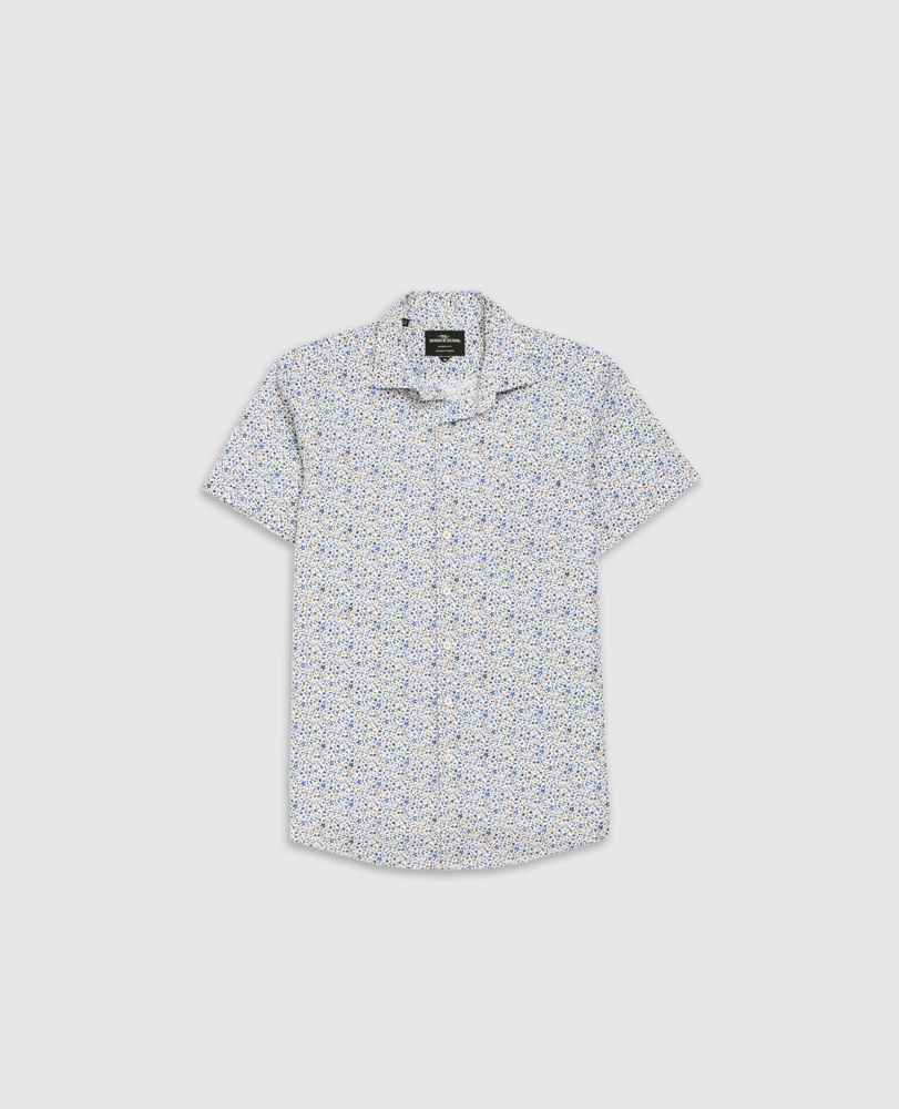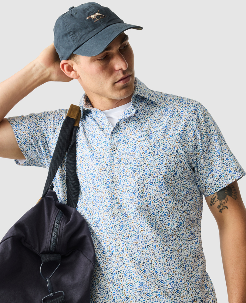 Cette chemise à la coupe sportive est le symbole de l'été. L'imprimé micro-floral subtil ajoute une touche d’élégance, tandis que le coton italien impeccable vous garde au frais et à l'aise. Les boutons rétro et les plis au dos égaient votre quotidien, ce qui en fait un modèle de choix pour un style décontracté.