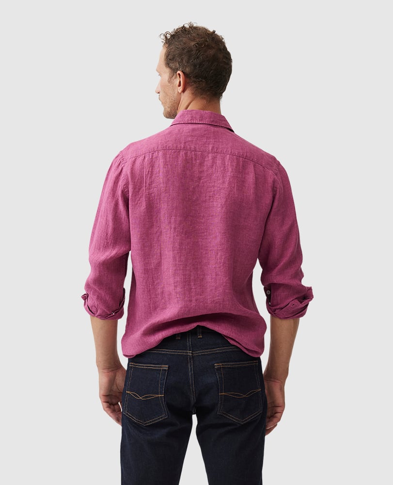 Cette chemise est en fils au délavé unique qui donne au tissu un aspect légèrement décoloré et une sensation de douceur. Fabriquée en Italie, elle est en lin de qualité supérieure récolté en France et en Belgique et certifié par European Flax. Prélavé pour une sensation de confort, le tissu continuera à s’adoucir avec le temps et à chaque lavage.