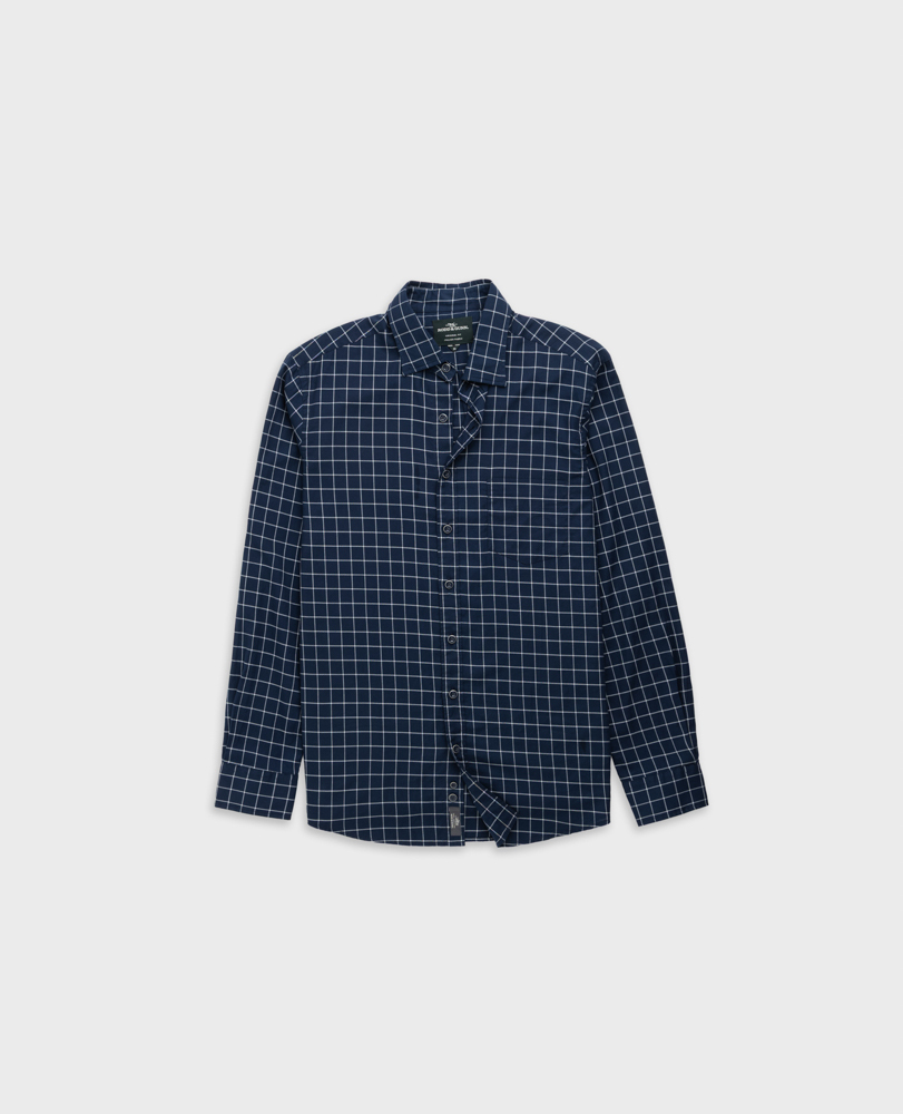 Cette chemise manches longues à grands carreaux est confectionnée en fils de coton de qualité tissés en Italie par Albini, un maître du tissu. Sa coupe soignée affiche un style classique rehaussé de poignets ronds à 1 bouton ajustable.