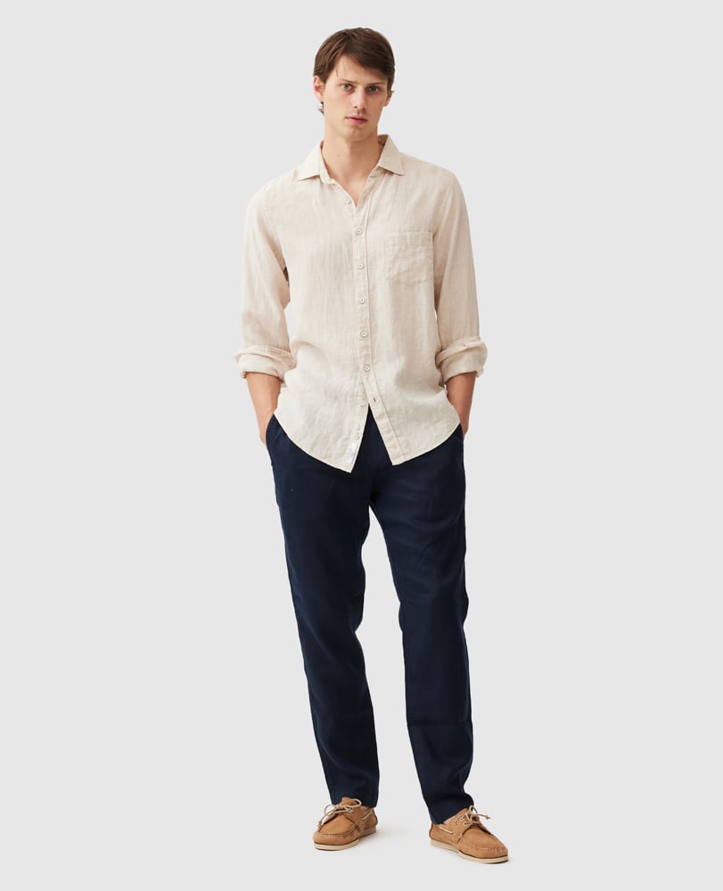 Cette chemise est en fils au délavé unique qui donne au tissu un aspect légèrement décoloré et une sensation de douceur. Fabriquée en Italie, elle est en lin de qualité supérieure récolté en France et en Belgique et certifié par European Flax. Prélavé pour une sensation de confort, le tissu continuera à s’adoucir avec le temps et à chaque lavage.