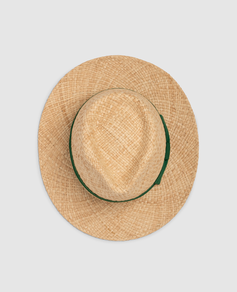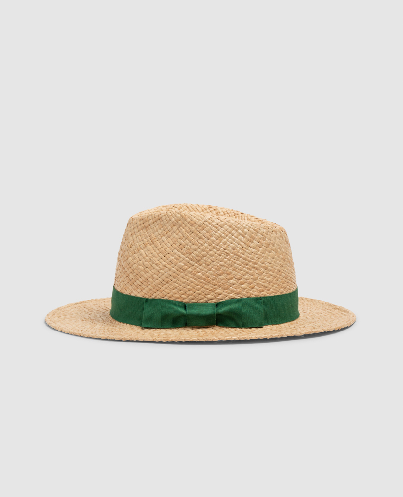 The Rockwood Place hat is our classic Panama straw hat for this summer season. Blonde with a sleek weave, the hat is finished with a vibrant green riband. The perfect accompaniment to linen shirting and boat shoes.