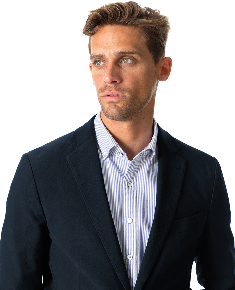 - Our deconstructed construction has a lighter, more natural shoulder shape