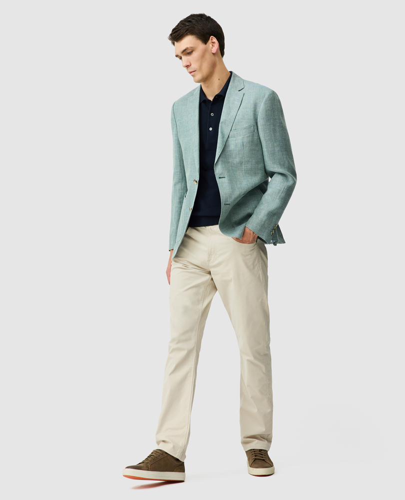 This jacket is crafted from a rich linen-wool blend that is woven in Italy, and features a lightweight and textured hopsack weave. Expertly crafted in our deconstructed make with natural shoulder padding, which lends the jacket a relaxed yet sophisticated look.