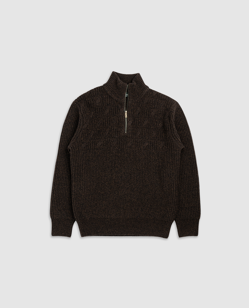 This sweater is expertly crafted from premium Italian-spun yarn, a blend of soft and warm Australian Extrafine Lambswool. The chunky gauge provides added warmth, making it a perfect option for the colder months. The design features a unique heritage cable detail across the shoulders and a chunky rib body, creating a rich texture and colour thanks to it's multi-coloured mouline yarn.
