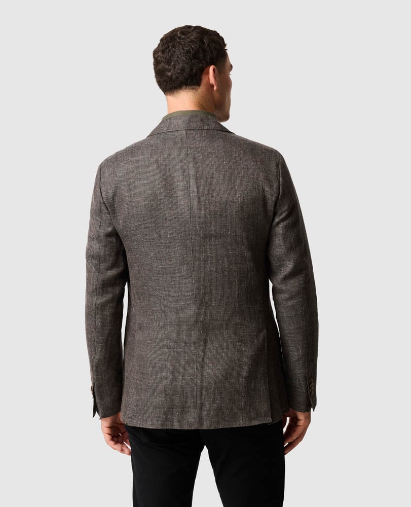 This jacket is crafted from a rich linen-wool blend that is woven in Italy, and features a lightweight and textured hopsack weave. Expertly crafted in our deconstructed make with natural shoulder padding, which lends the jacket a relaxed yet sophisticated look.