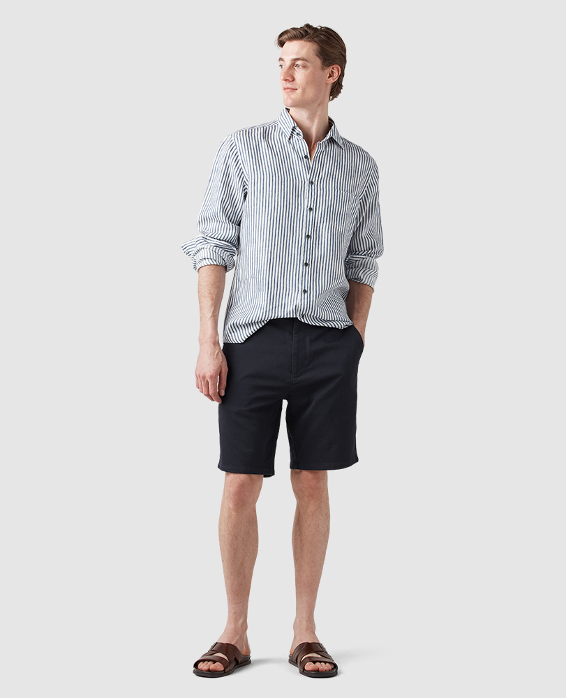 Our popular Motion Short is crafted from a four-season Italian twill, enriched with stretch for comfort and maximum range of motion while on the move. The mid-weight structure of the fabric is wearable all year, whilst cut in our universally flattering original fit.
