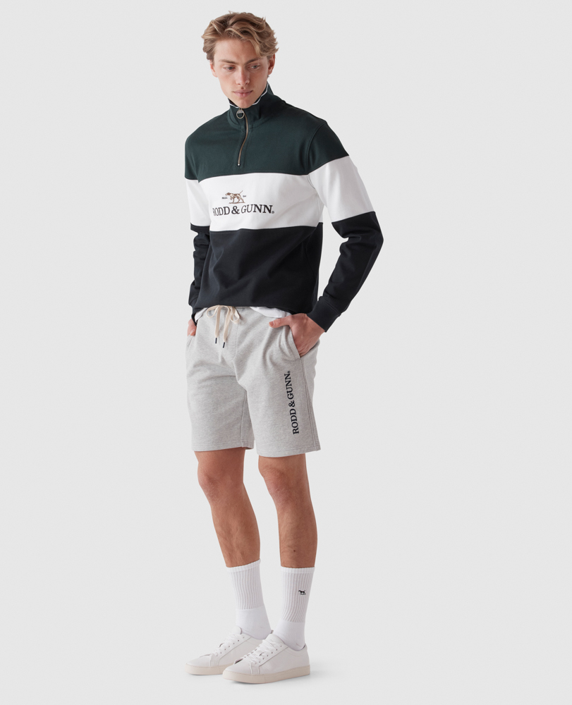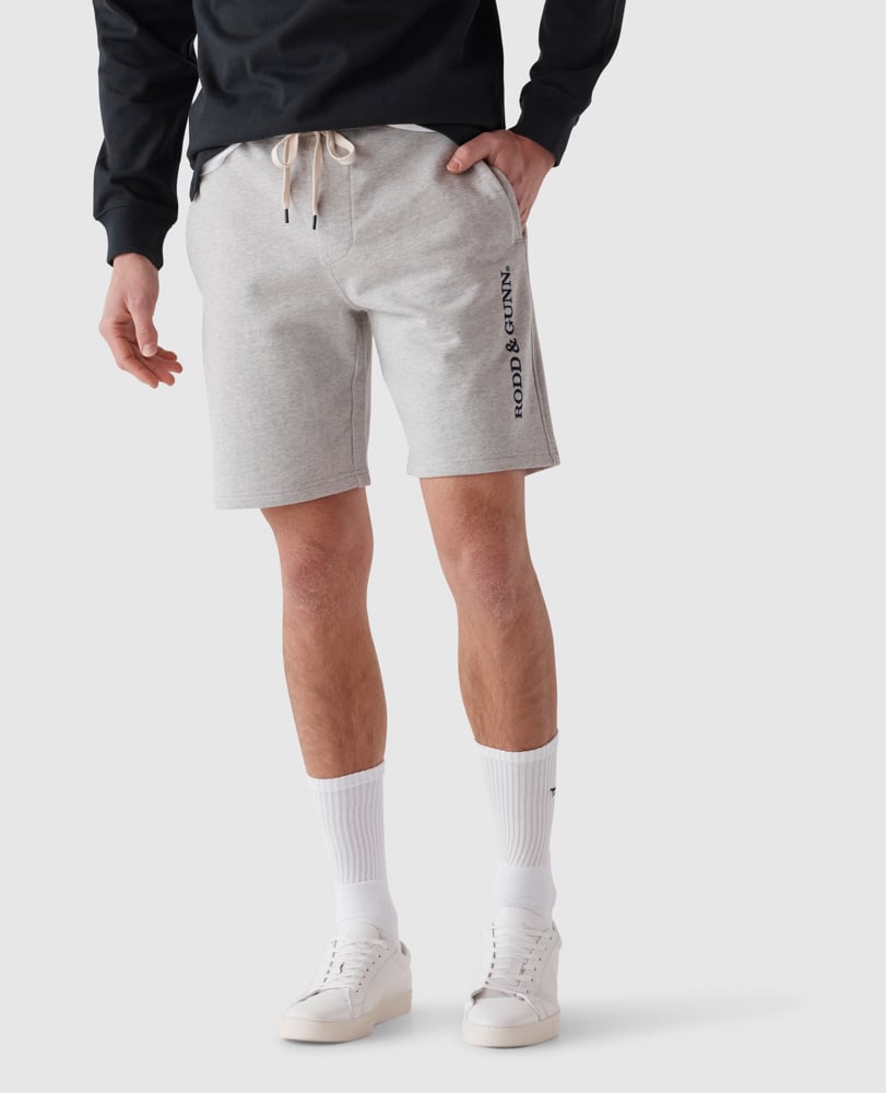 An old-school gym classic, these sweat shorts engineer a traditional hard working four-way stretch fleece with an updated slimmer-fitting leg. Featuring an elastic draw-cord waist, on seam pockets to prevent gaping, and branded with Rodd & Gunn lettering down the leg.
