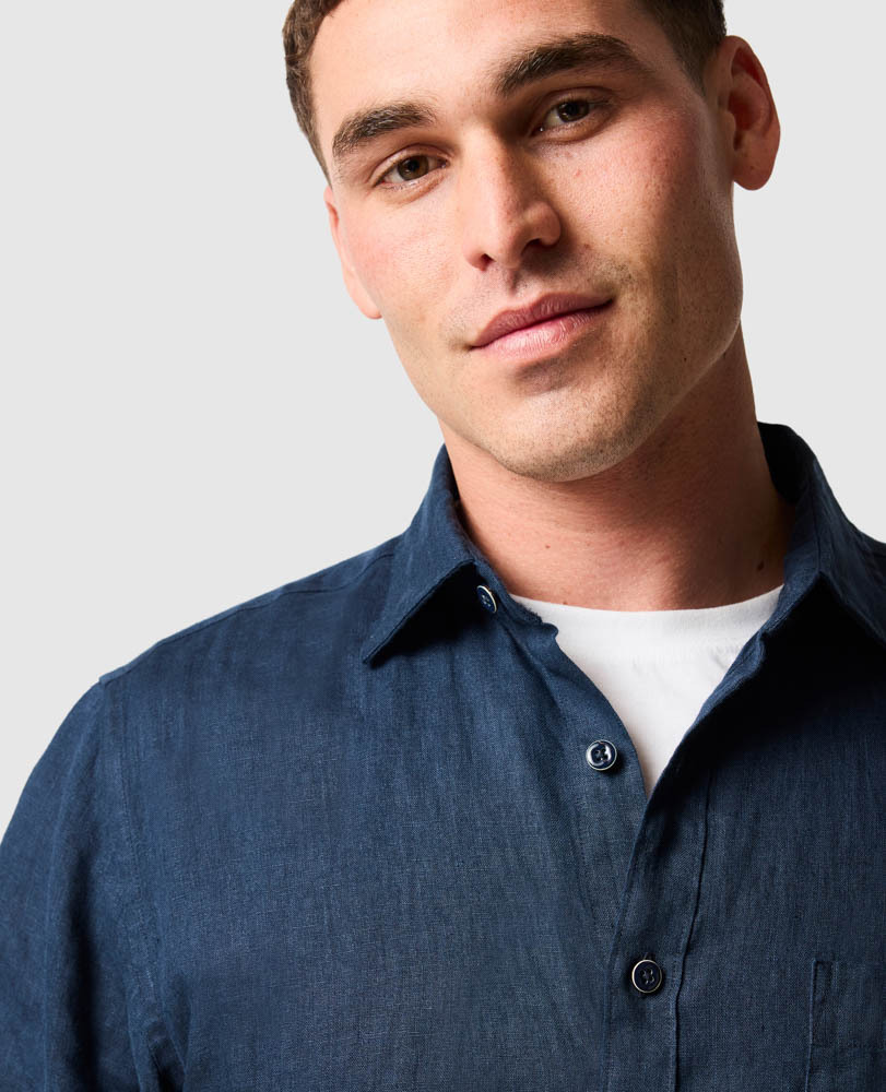 Spend summer in relaxed, easy going style with our short sleeve linen shirt which has been prewashed for softness. Made from premium linen sustainably sourced from France and Belgium and milled expertly in Italy, this lightweight and breathable shirt features a unique delave wash, which lends the fabric a slightly faded look. Cut in a contemporary fit, this shirt is finished with a chest patch pocket and painted metal buttons.