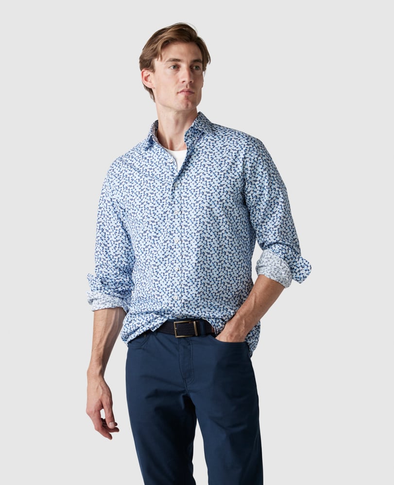 This playful print shirt is well-appointed with a cotton-poplin Italian fabric. Exceptionally lightweight and comfortable to wear during the warmer months, this shirt will be an endlessly versatile addition to your wardrobe- for everyday wear, weekend occasions or long-anticipated holidays.