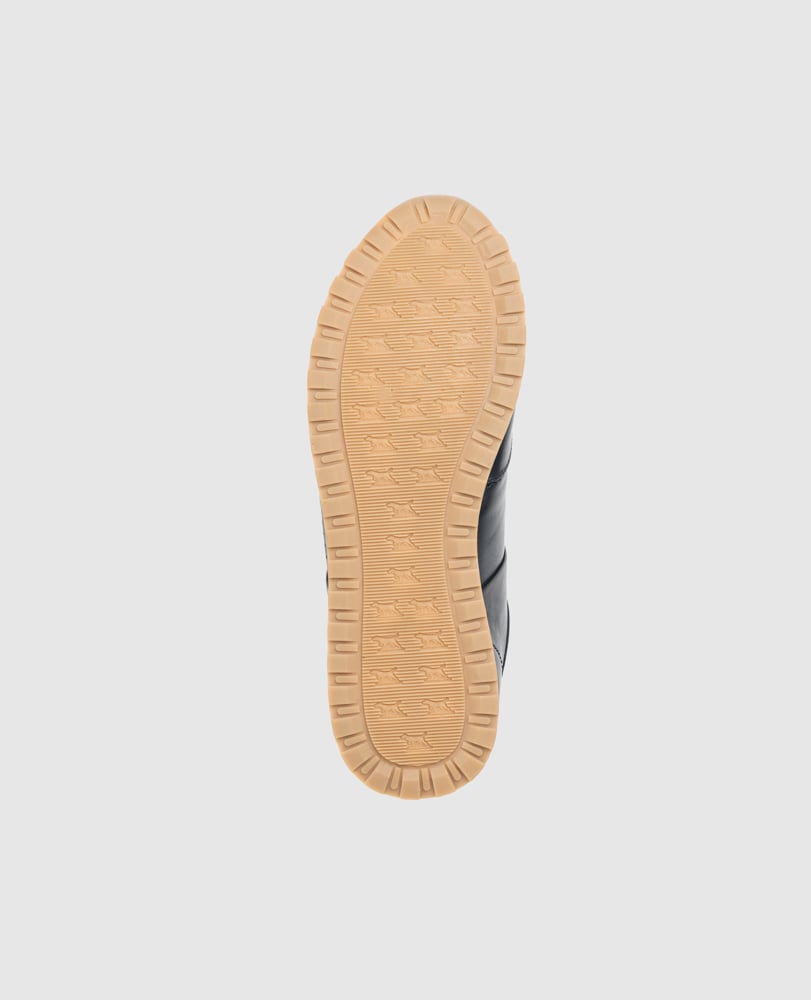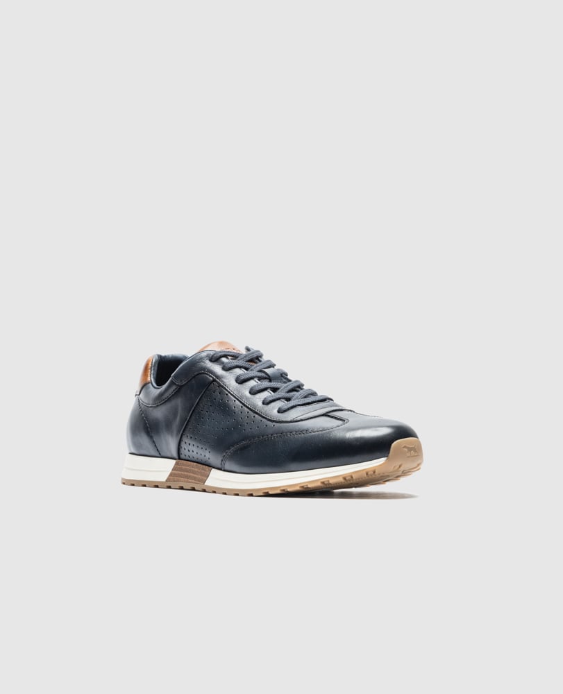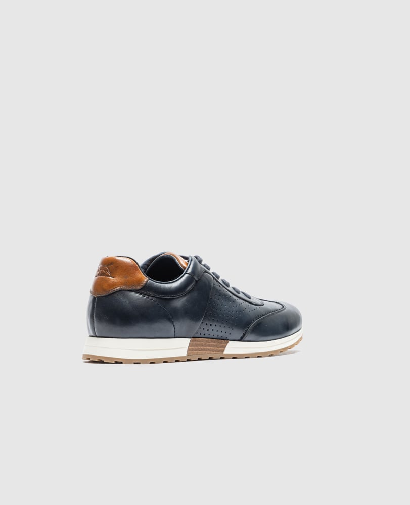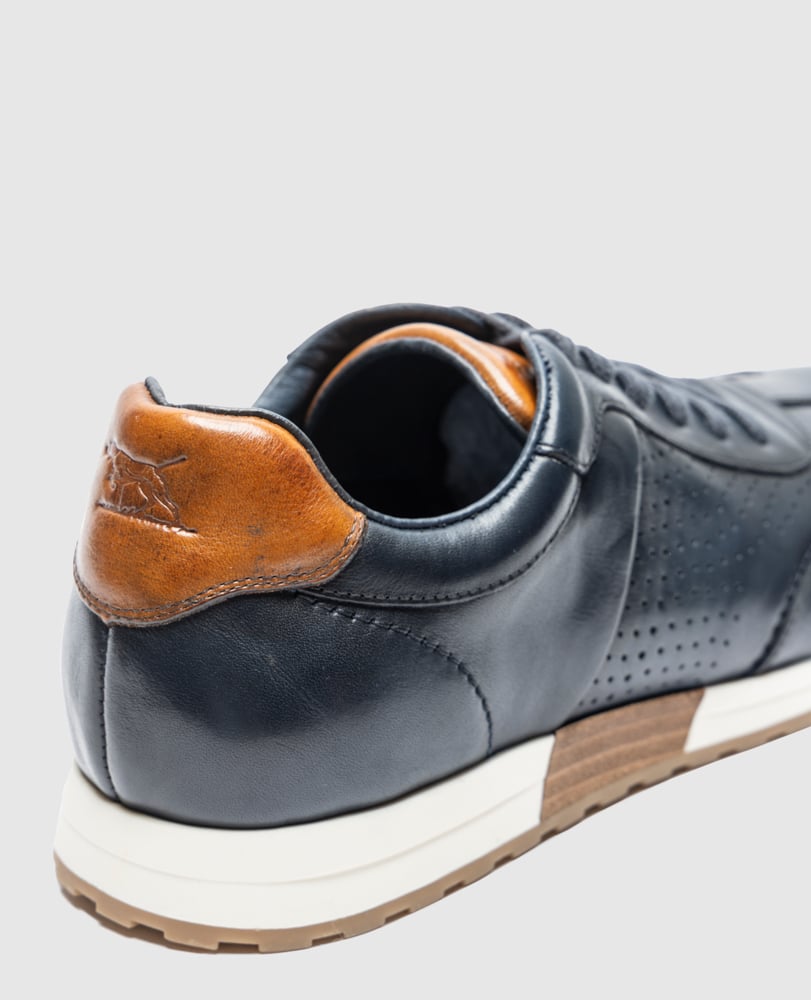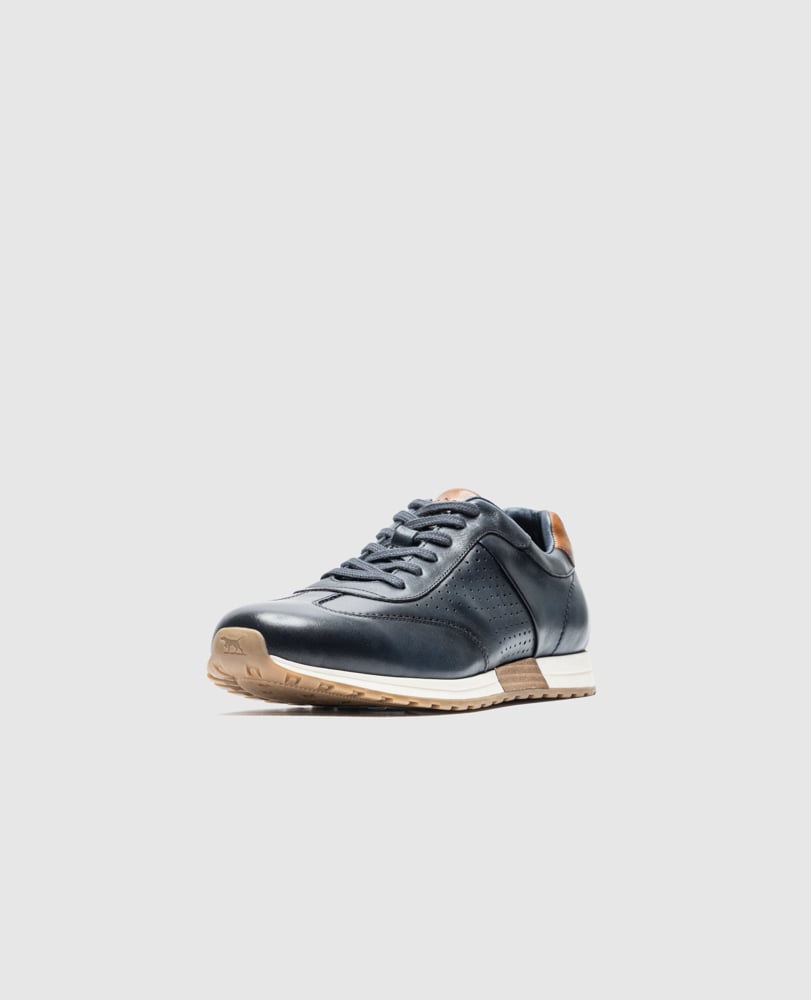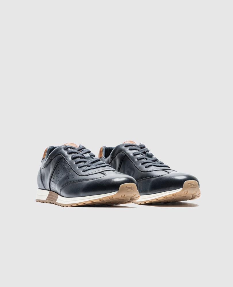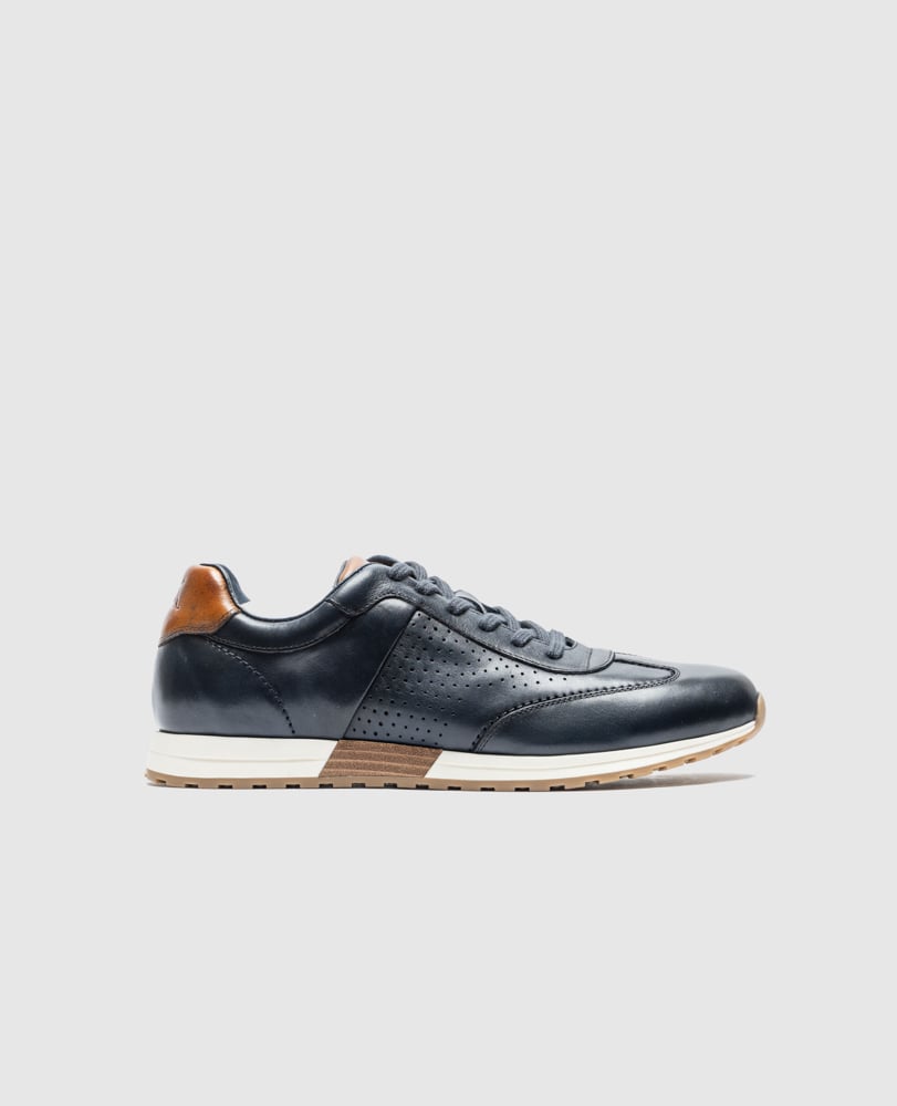 The Otago Sneaker is a retro inspired trainer crafted from soft milled (tumbled) leather, highlighting the natural grains of the leather. The dual density rubber outsole delivers a perfect balance of comfort and wearability and features a leather veneer insert into the waist of the unit. The upper detail features a perforated pattern that forms a stripe like effect. The Otago is leather, and fabric lined, and features a leather covered removable polyurethane footbed for superior comfort. The Otago is paired perfectly with Denim, chinos or shorts.