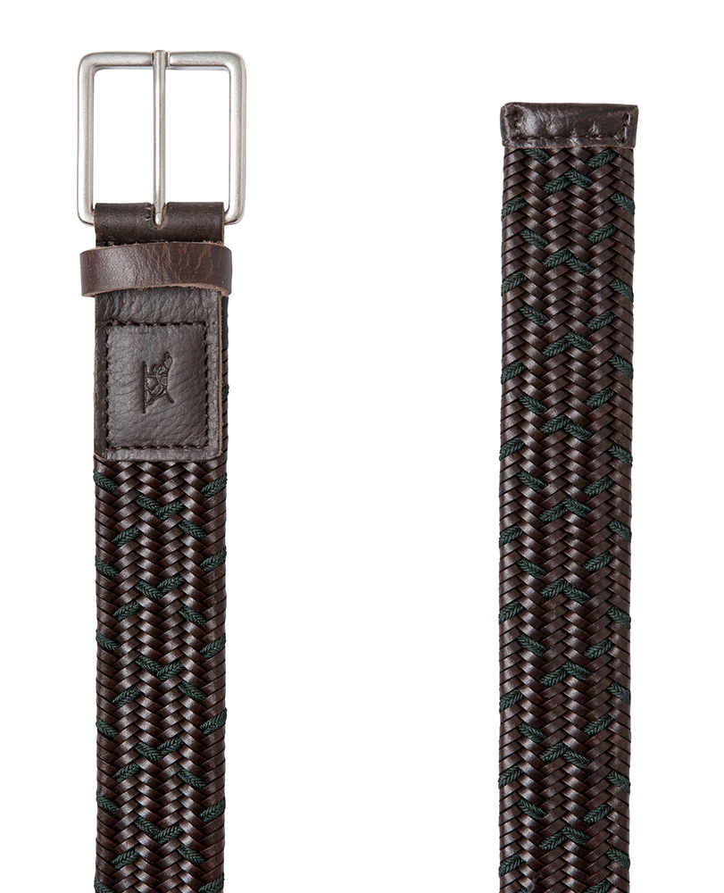 A herringbone design weave runs through the Norwood Road belt. The rich leathers are interspersed by a contrast elastic rope, giving stretch and comfort, and interest in the belt weave. Trimmed in genuine leather and finished with a square buckle the Norwood Road belt will enhance any outfit.