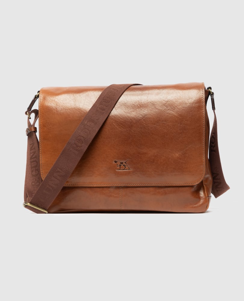 Style meets function with the Cambridge Messenger Bag, made from rich, soft European leathers, canvas lining and a fabric Rodd & Gunn branded shoulder strap. Inside there is a separate compartment to protect your full size laptop.