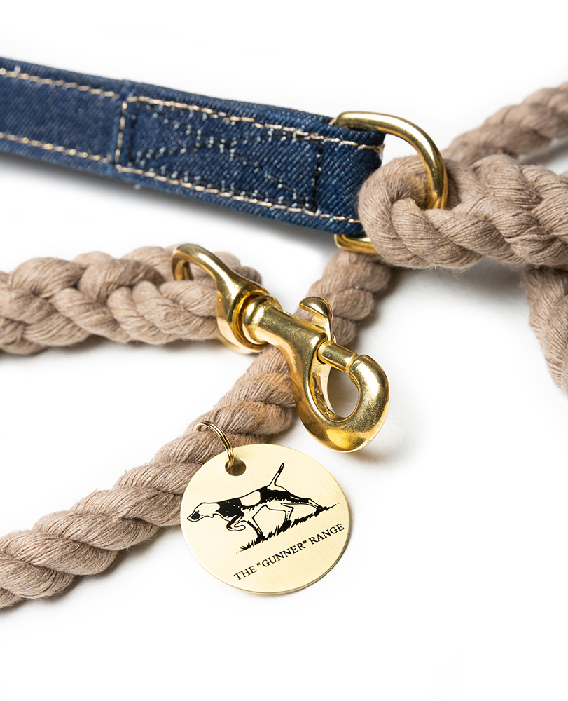 The "Gunner" leash, inspired by its namesake the leash is crafted in Brooklyn NYC. Our ambassador stays sharp with a leash made from synthetic P.E.T. to withstand years of use. Finished with solid brass hardware and individually numbered tag, this lead will be your best friends, best friend.